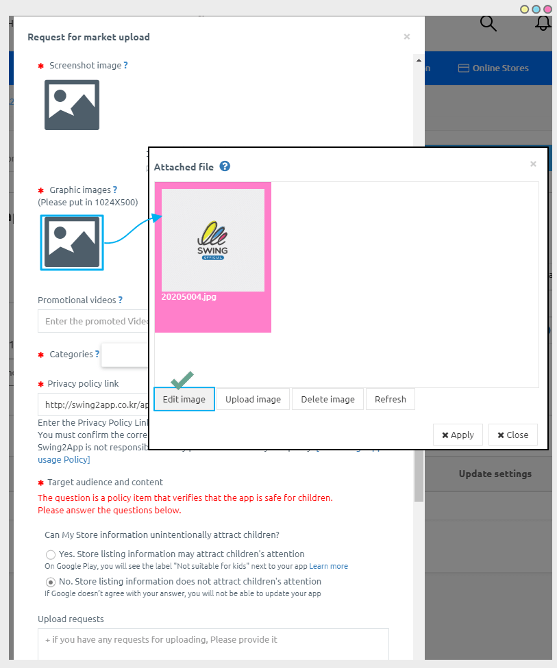*Image Editing Applicable Menu: App Basic Info) App icon, idle screen image/web template page image attachment/market upload image attachment.