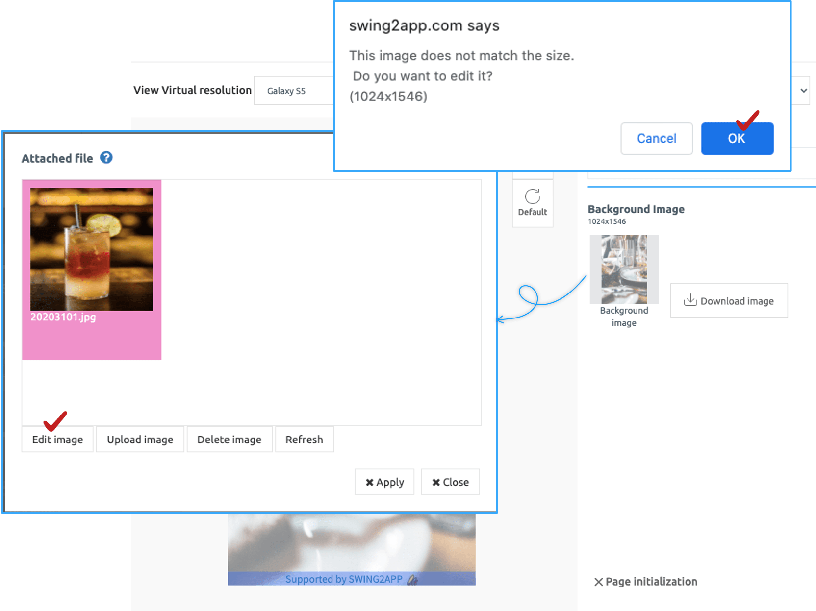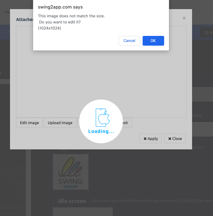 If an image size you want to upload when creating an app is different from the recommended size mentioned in the production method, you can easily change the size.
