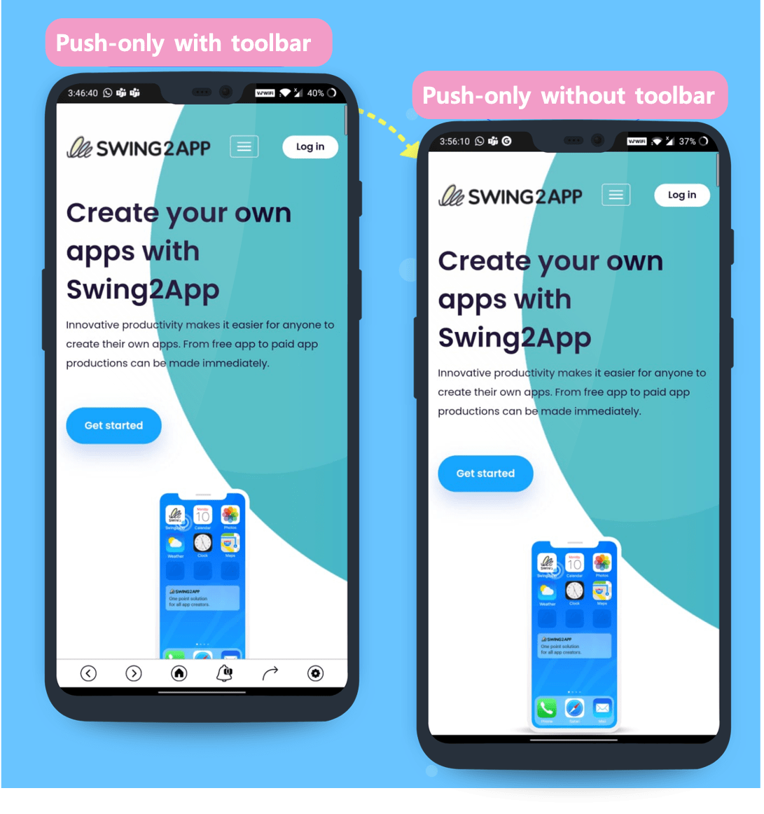 Unlike web view apps, push-only apps can send push notifications, so push toolbars are created together.