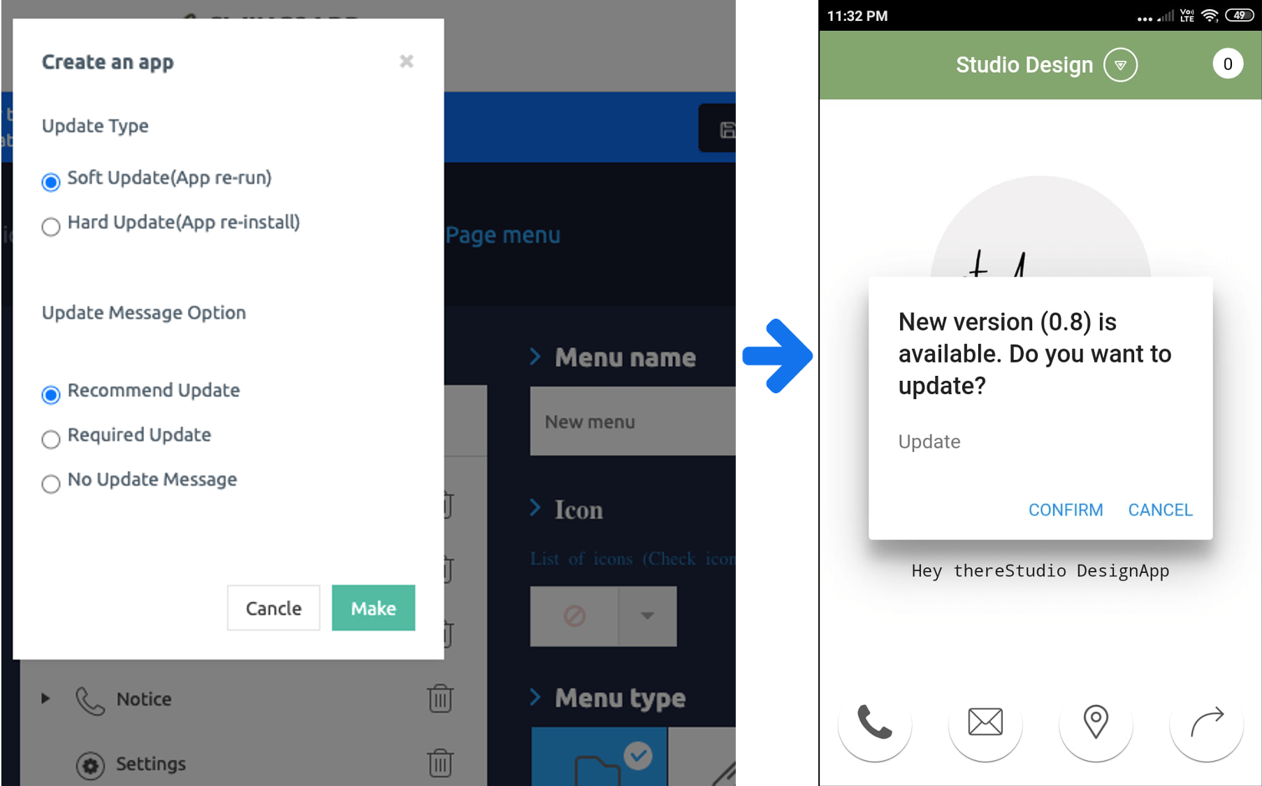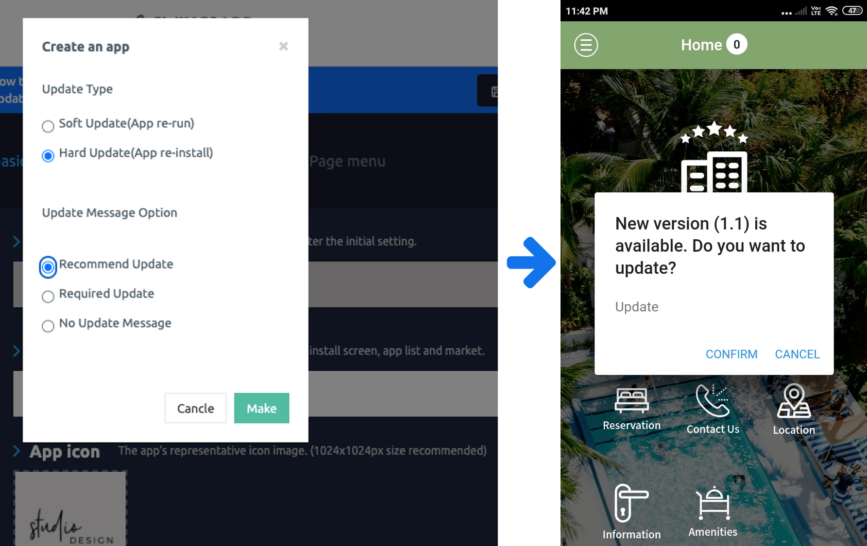 Once you’ve modified app content and confirmed update type, let’s see how the update works in the actual app depending on the type of update.