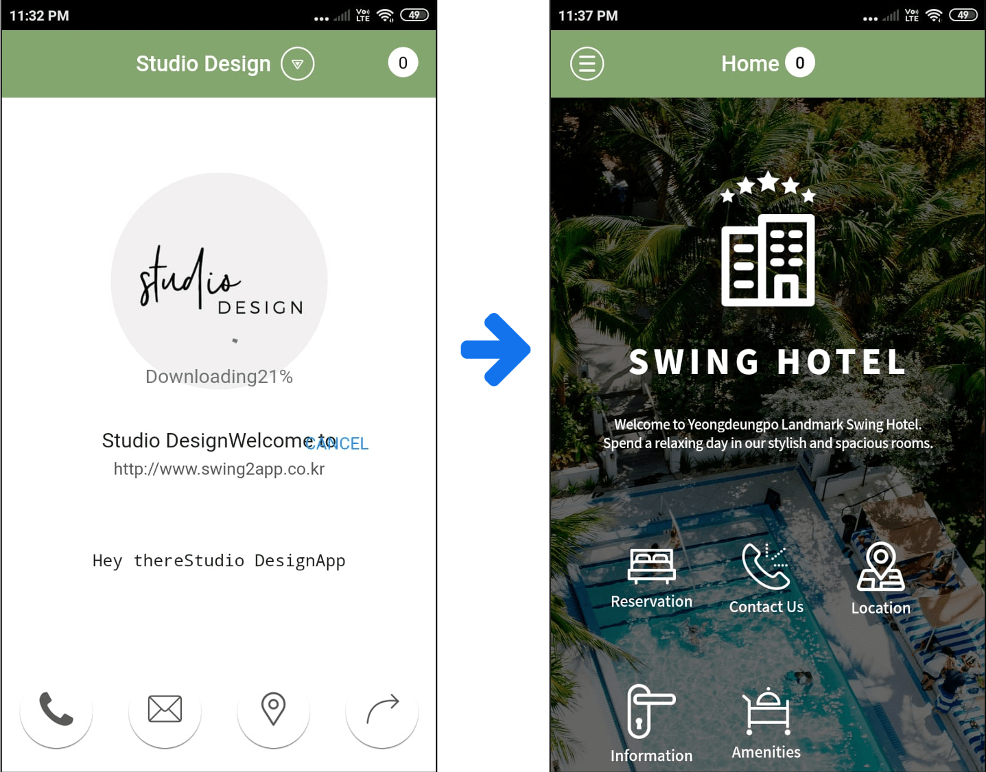 Apps created by swing2app are free to modify after the app creation.
