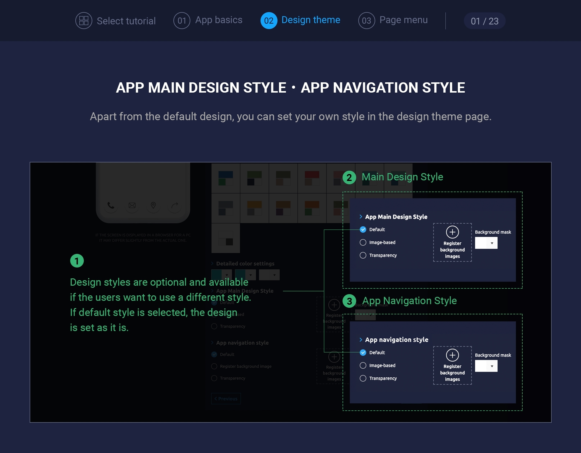 [Please check the app main design style setting method]