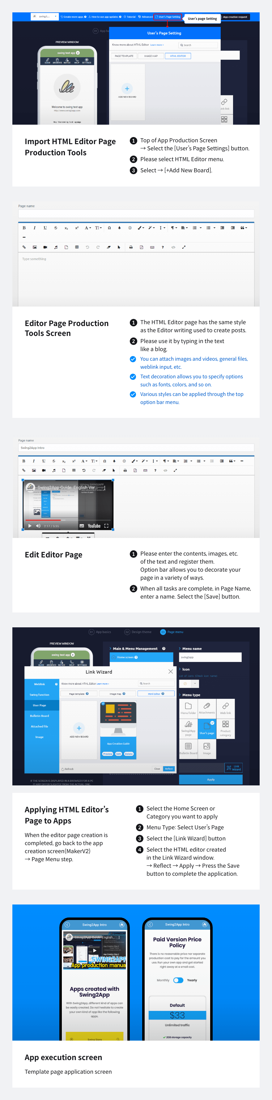 HTML editor pages are the same style as writing posts provided by swing2app.