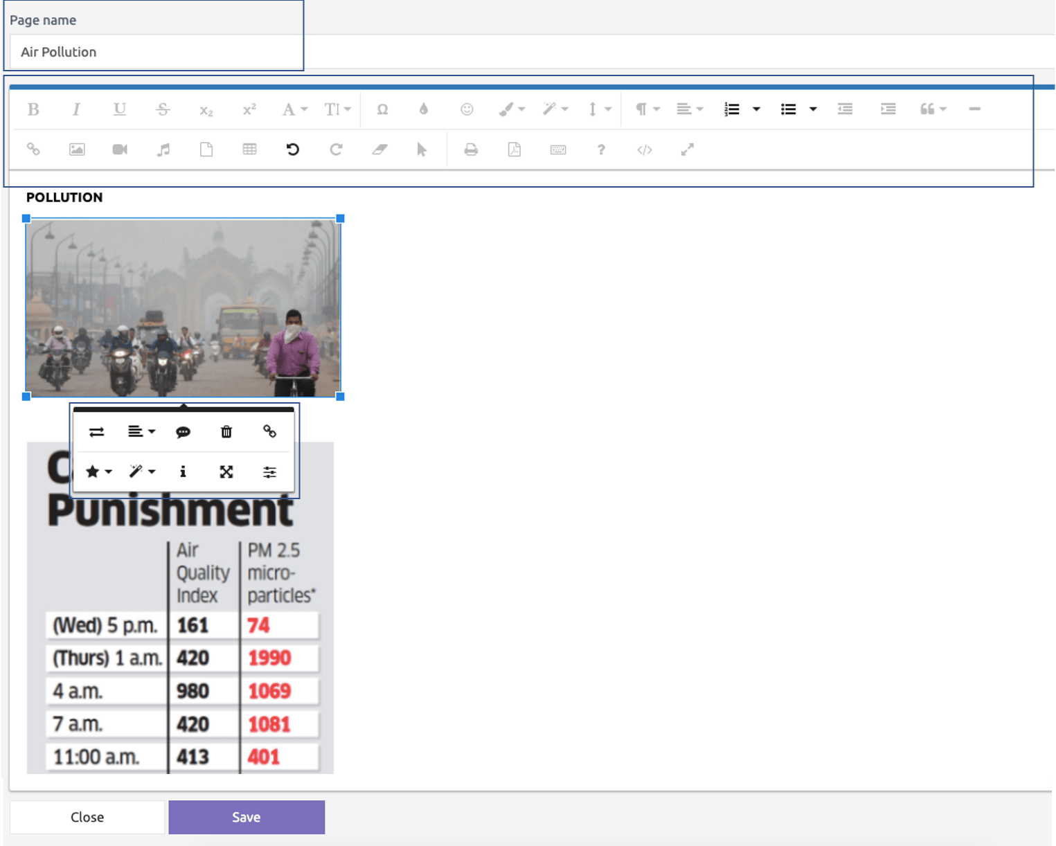 When the editor page is completed, press the save button.