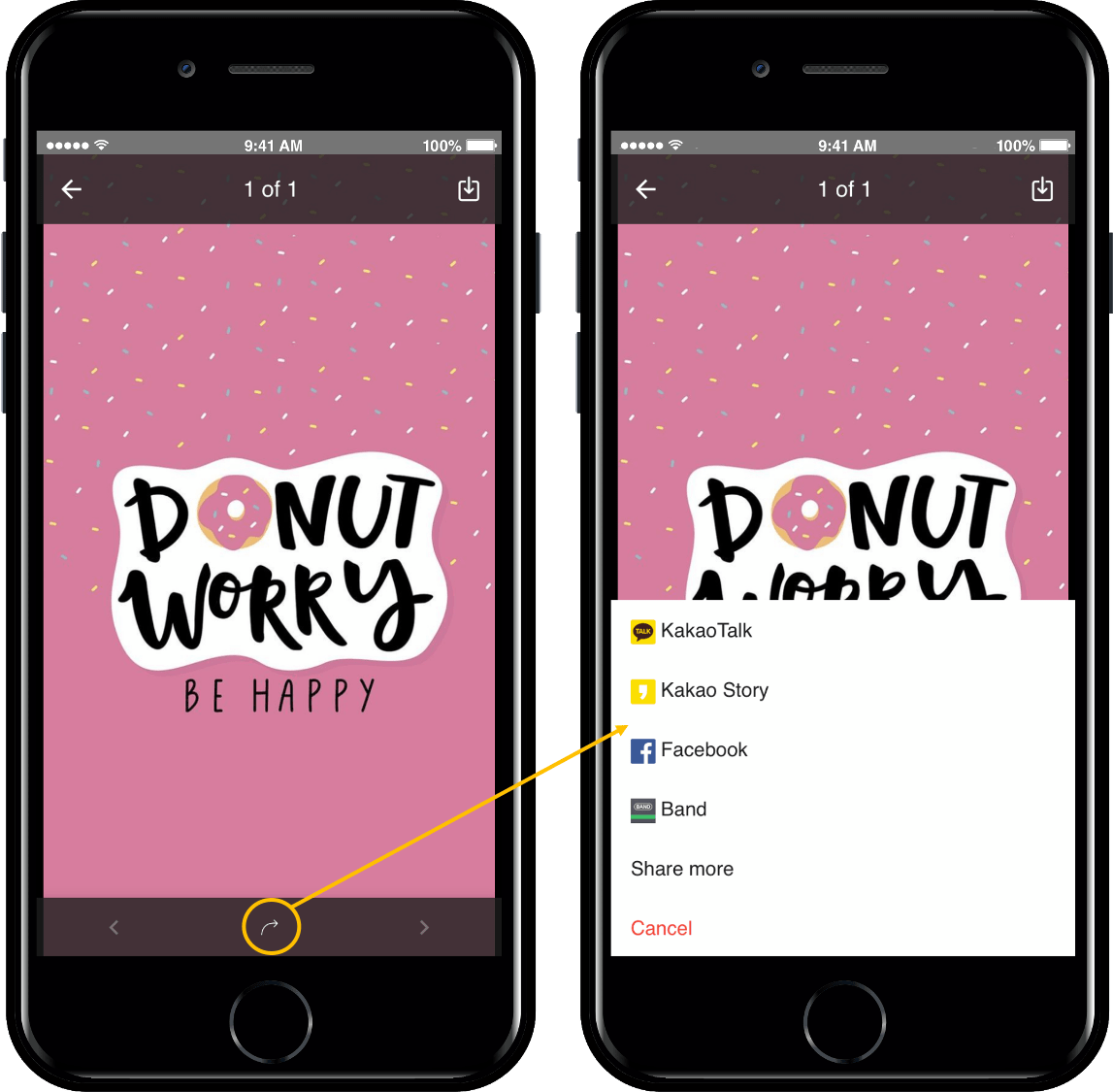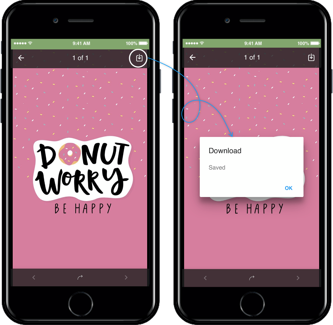 If you click the download button, the image is downloaded to your phone and saved.