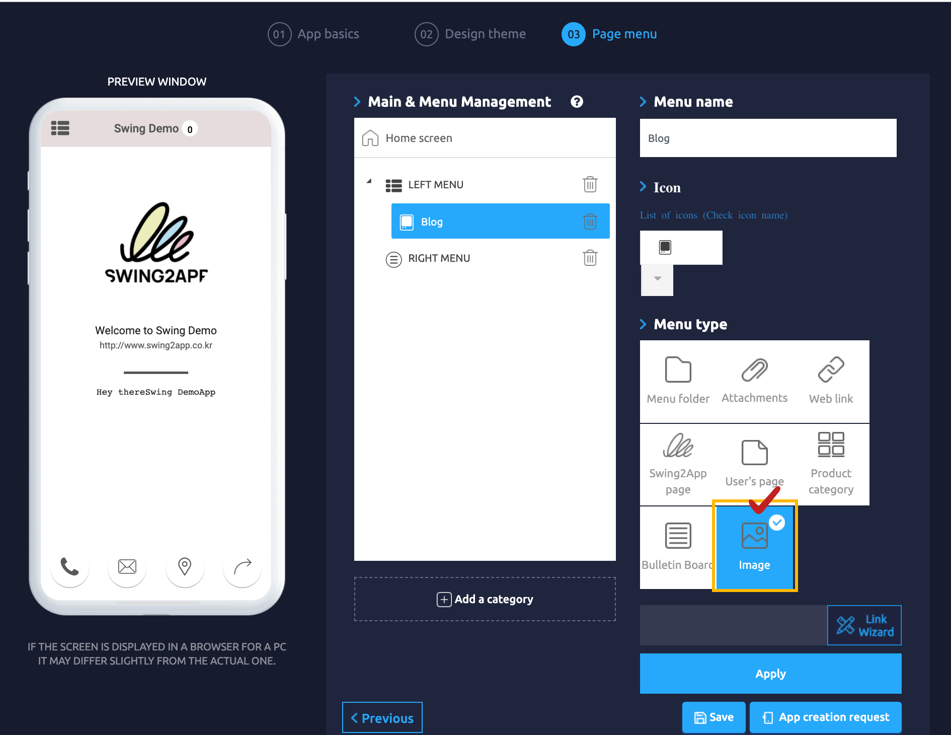 3) Menu Type: Select [Image]