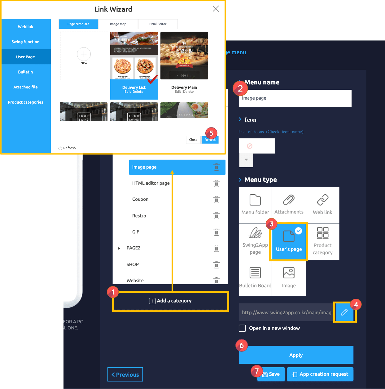 4) For each user page, please refer to the usage manual and check the features of each page making tool to decorate the app.
