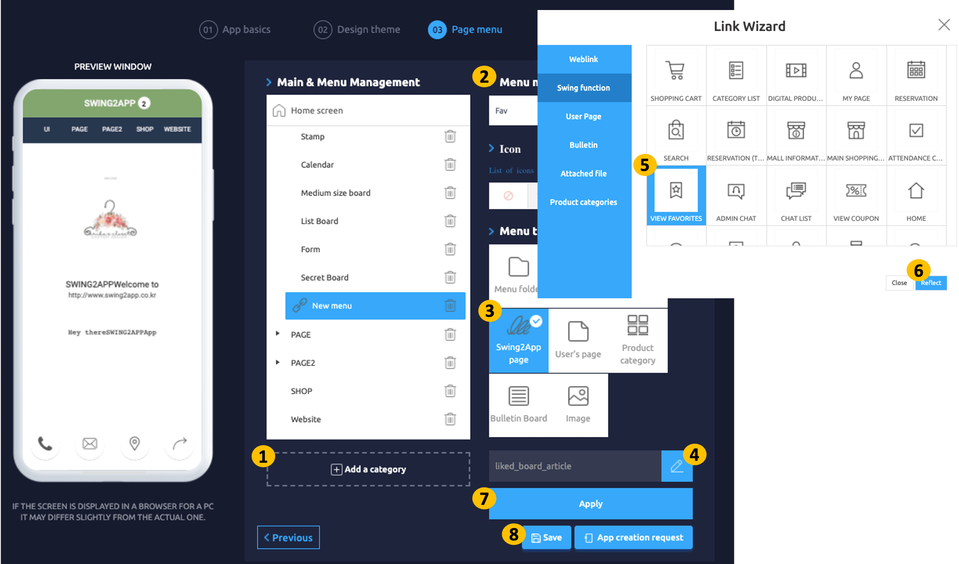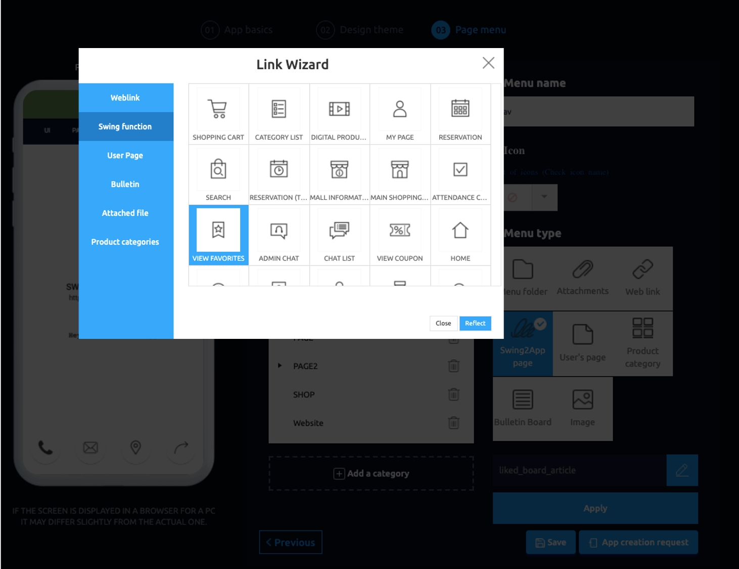 View favorites can be used in the Maker(V2) page → menu step → Swing2App page.