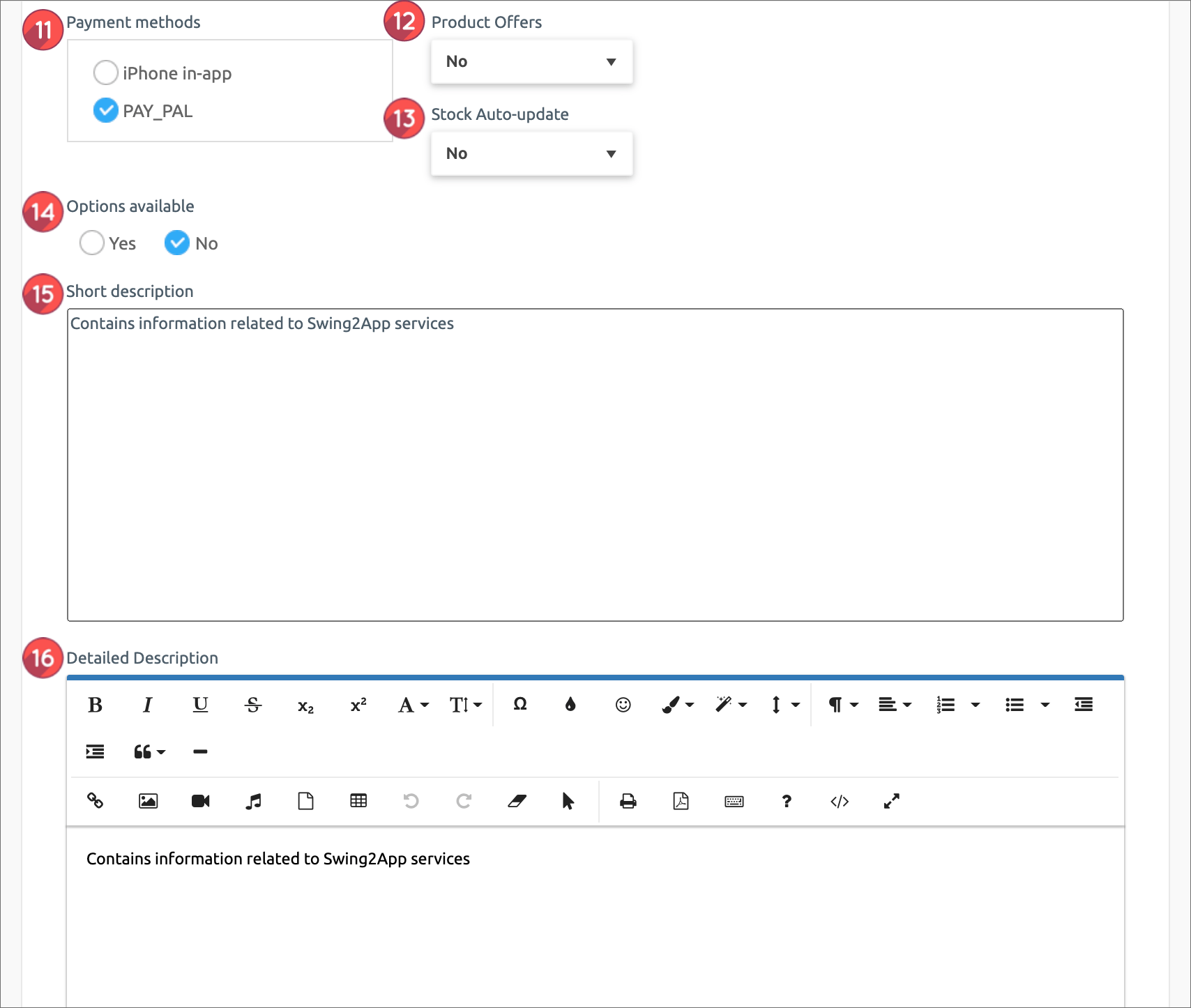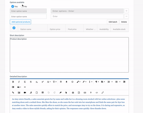 14. Availability: You can use it if you add an optional item to your product.