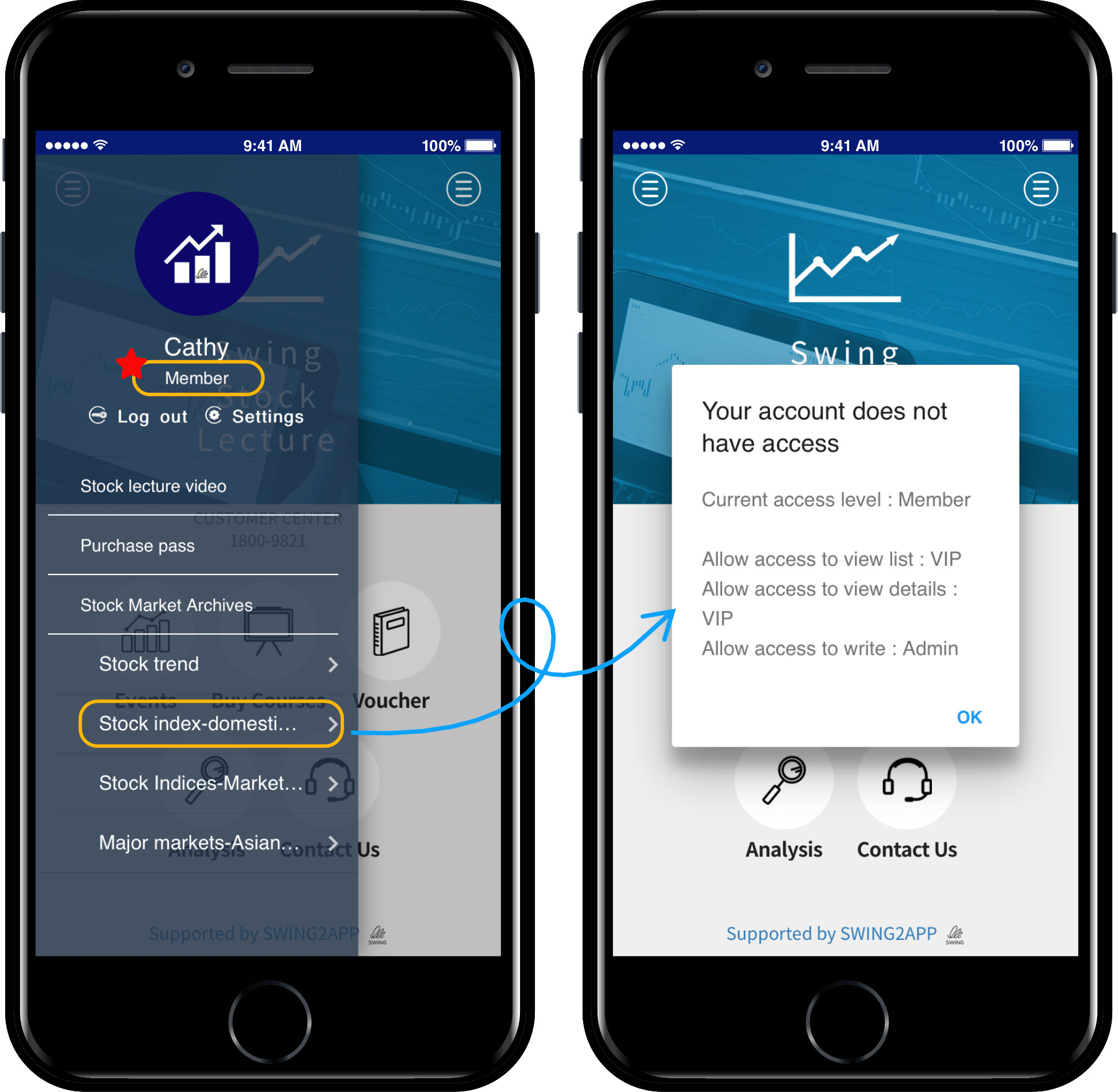 STEP.6 Swing Stock Sample App) Confirm the purchase of permission change
