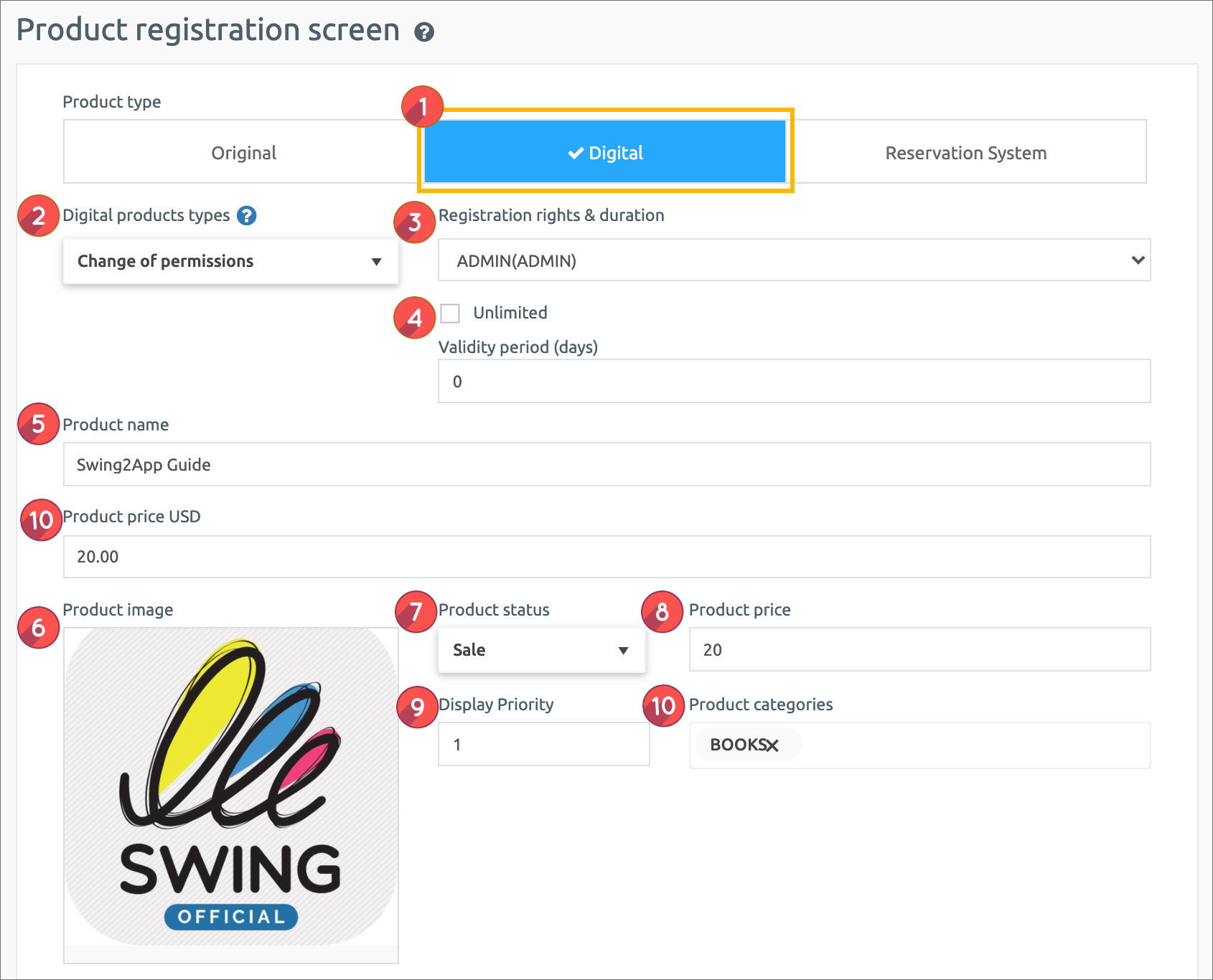 1. Product type: Select ‘Digital’.