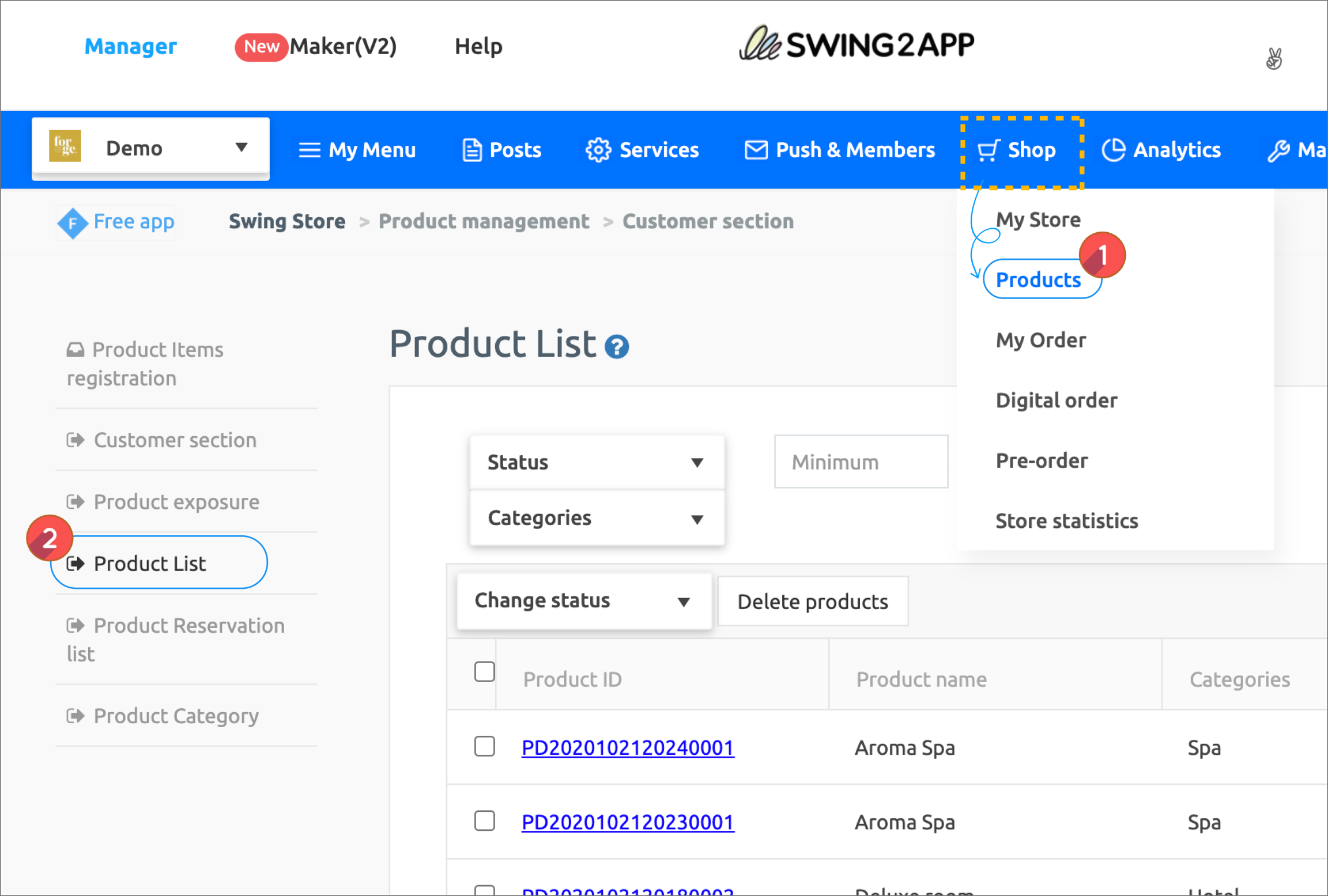 From now on, we will create a category in the swing store menu and register the privilege product.