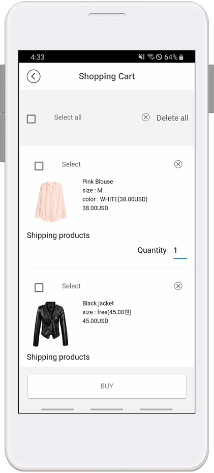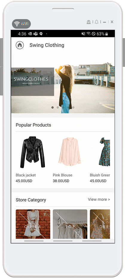 We will inform you how to apply ‘shopping cart ‘ among the pages provided by Swing Shop to the app.