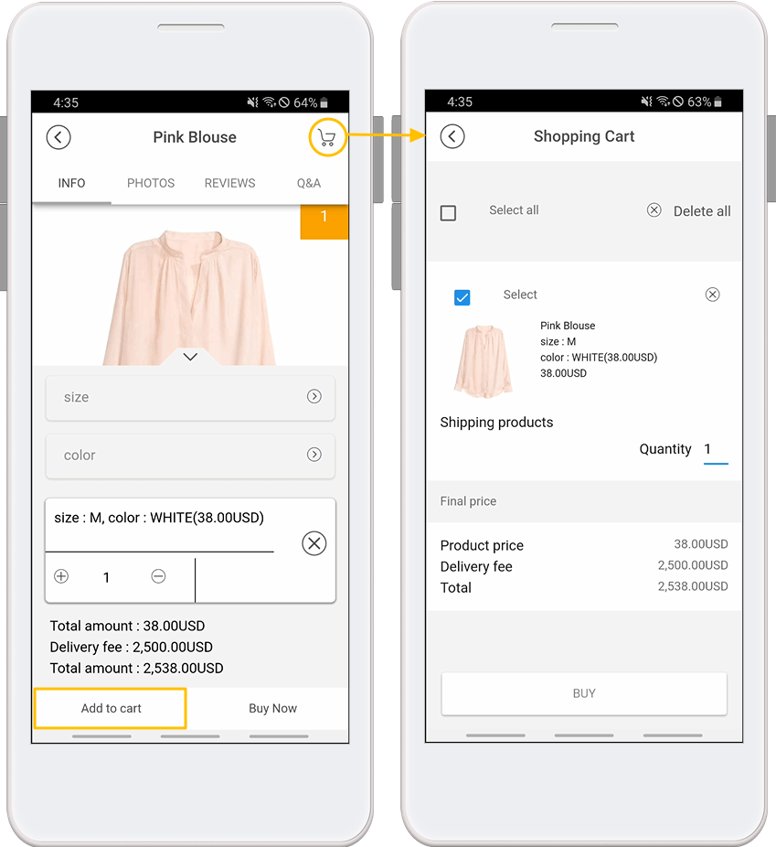 STEP. 2 Shopping cart app execution screen