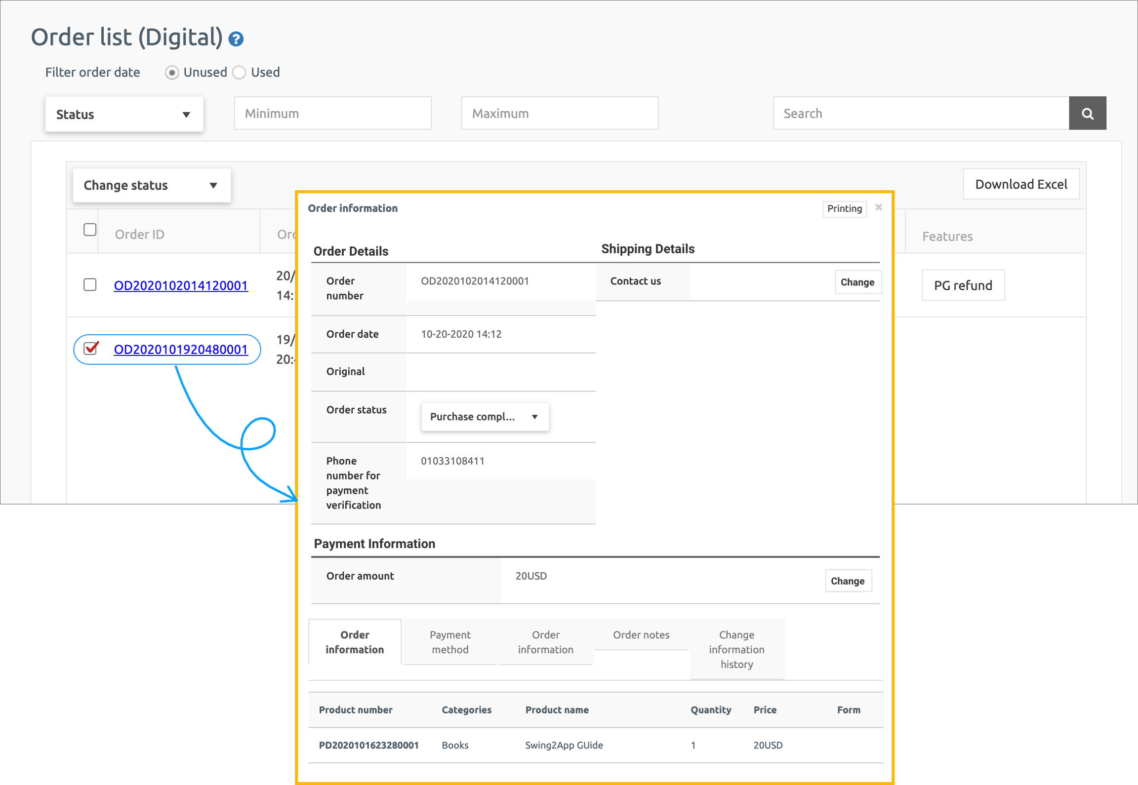 If you are selling digital products (permission rights, PDF viewing, video and file sales, coupons, etc.), go to Manager → Shop → [Digital Order] page.