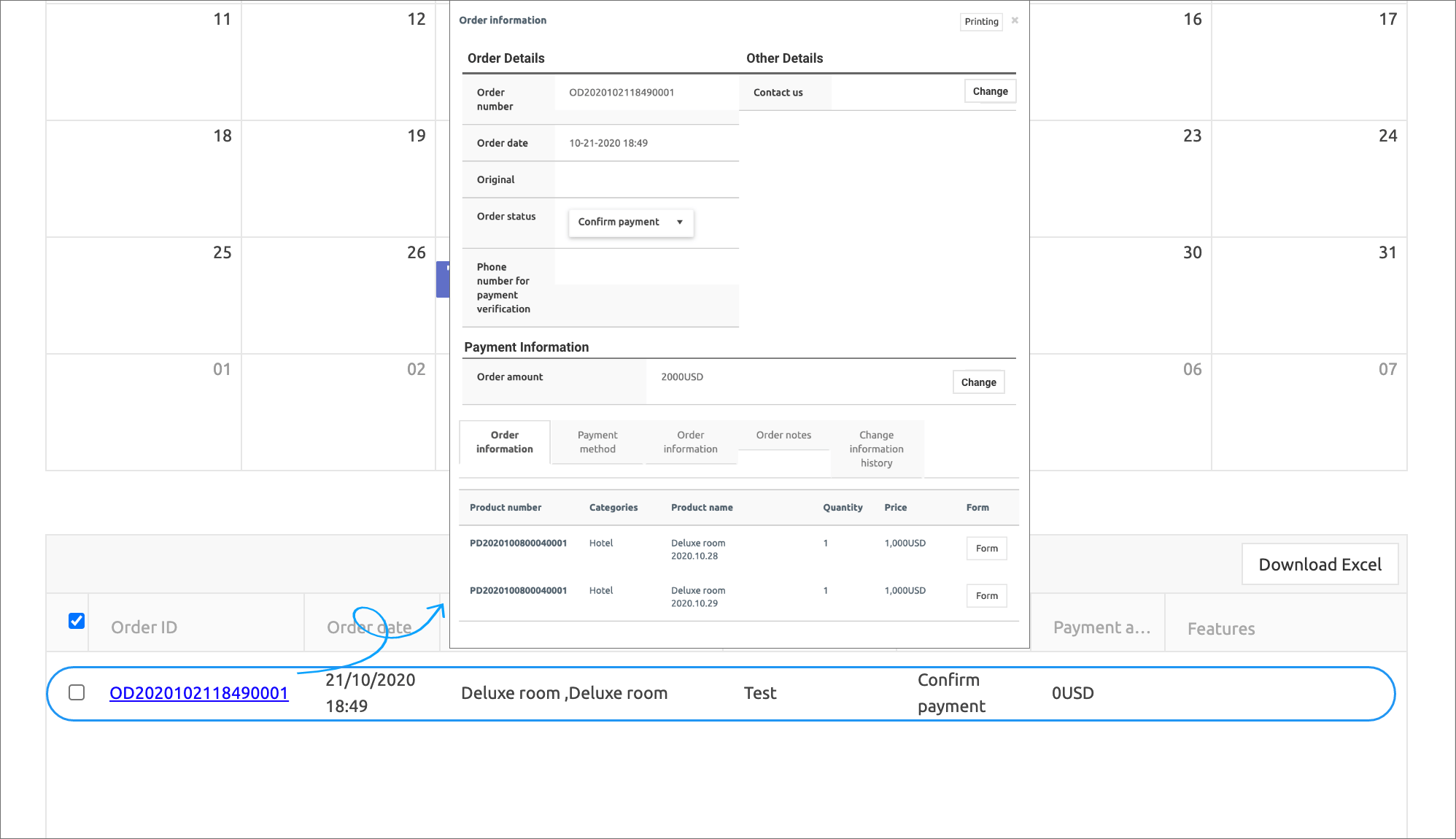 If you select ‘Order ID’ from the order list, you can see the user’s order information pop-up.