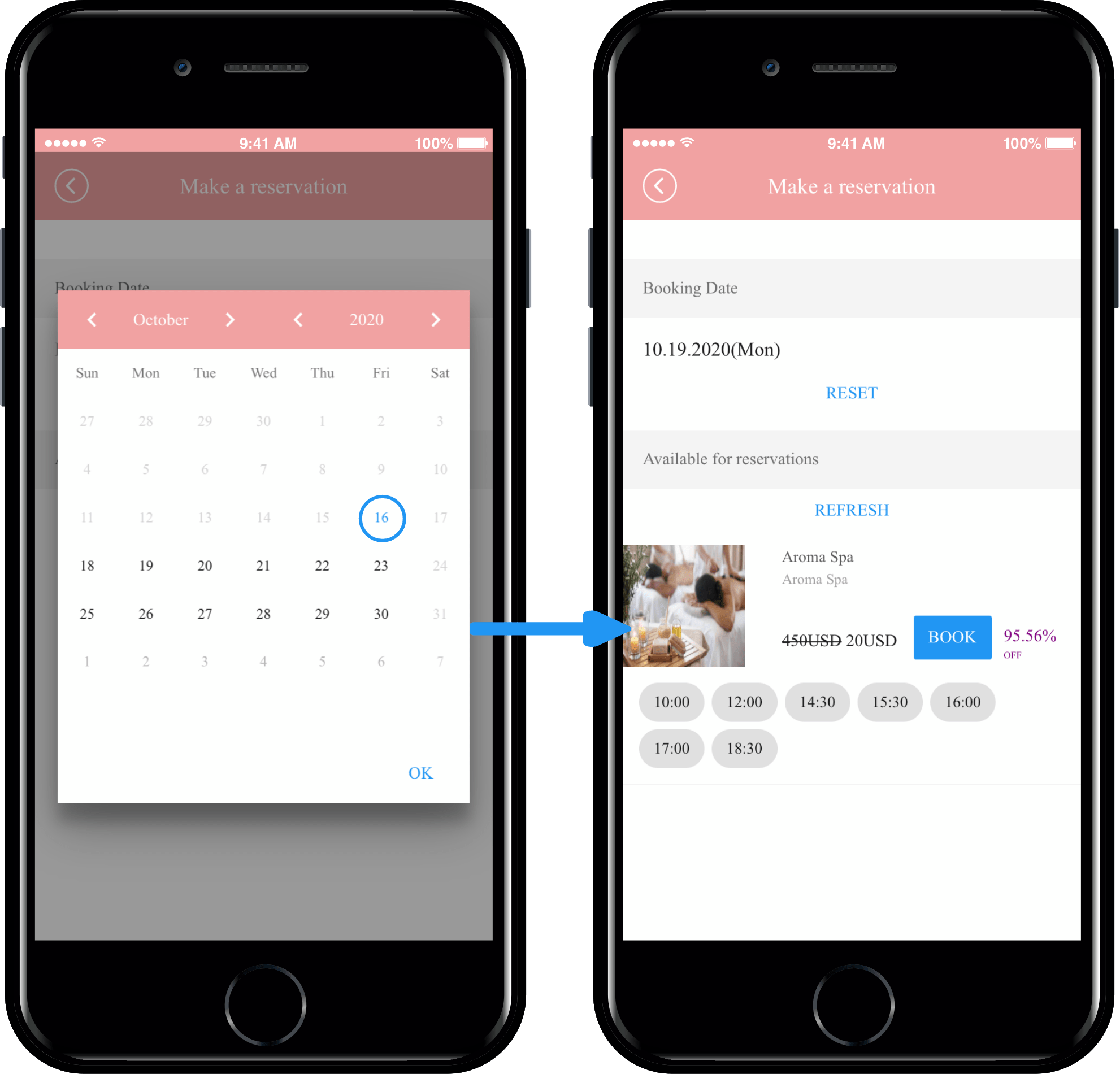 The second page is Time+Date Booking.