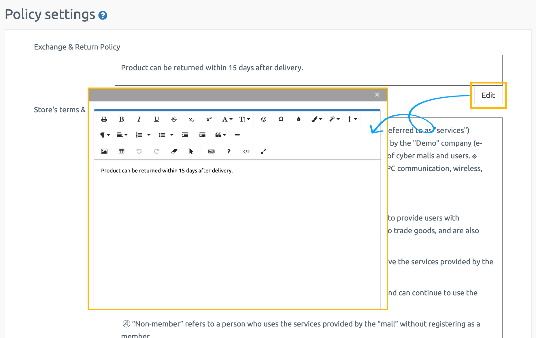 *How to set up the policy – We will inform you of the usage policy, exchange and return policy, and non-member rights.