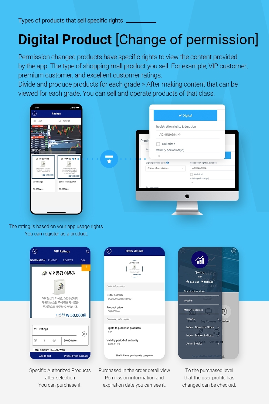 A type of product that sells certain class privileges. This product can be restricted from viewing and purchasing contents according to the grade. This is one of the most frequently used types in content purchasing sites.