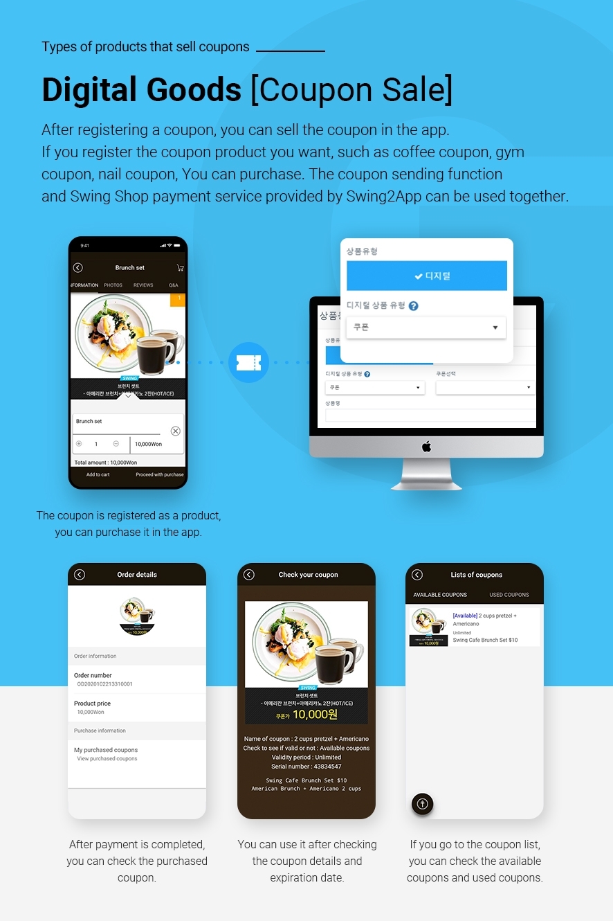You can register your coupon and sell it in the app. You can use it through the serial number listed on the coupon and use it for events in the shopping mall. You can check the ‘Used Coupon’ list on the coupon inquiry page.