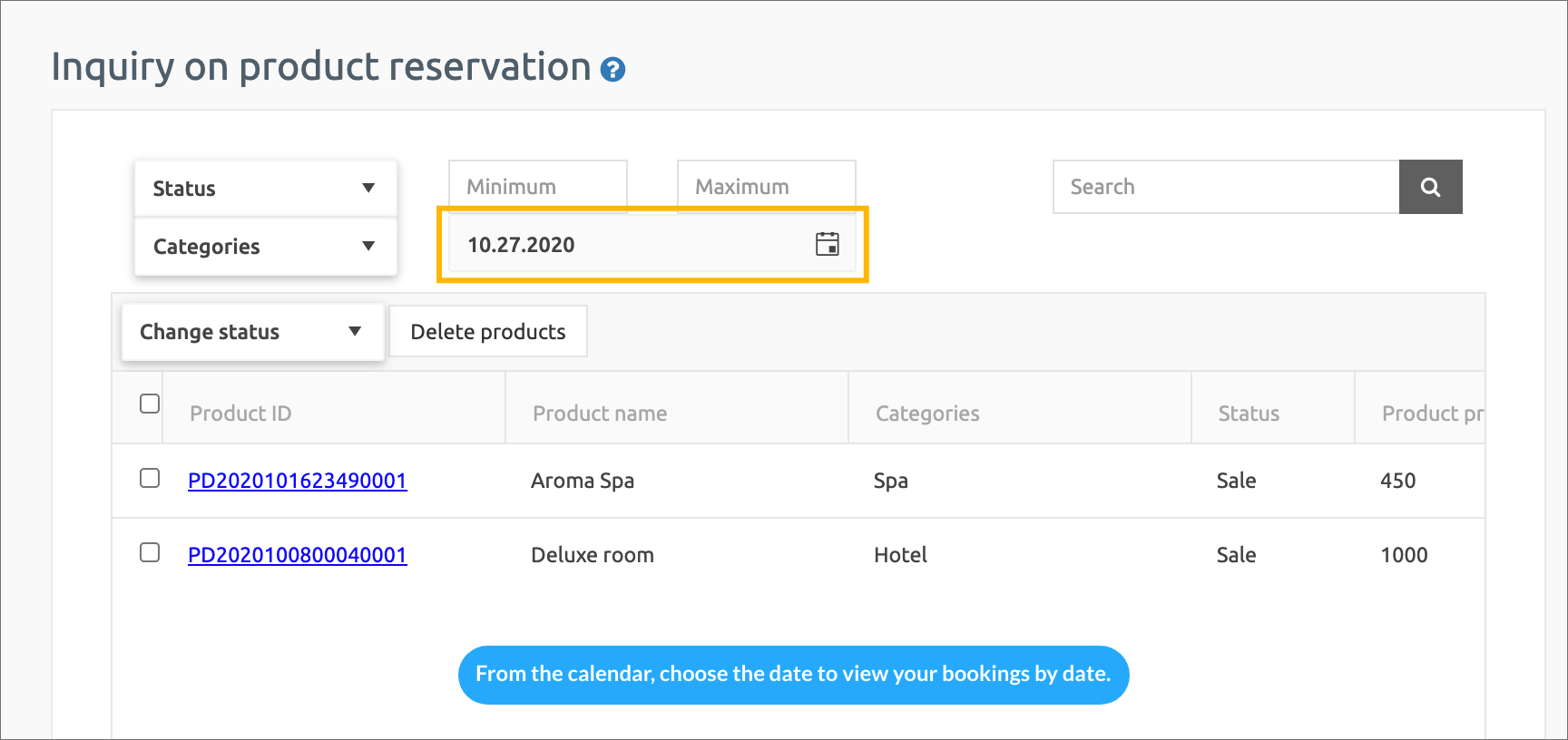 Reserved Products is a page where you can check the registered products by applying the reservation system.