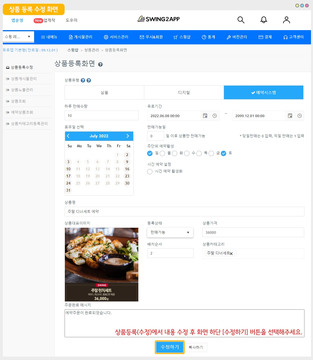 You can easily register your product by reflecting your edits on that page and selecting the Modify button again.