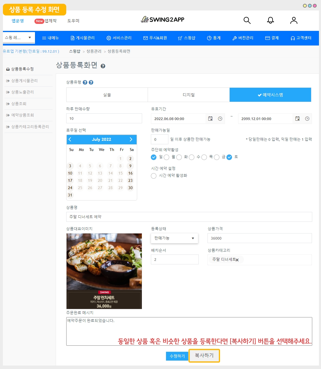 If you select the [Copy] button at the bottom of the product registration screen, the product page will be copied as is.