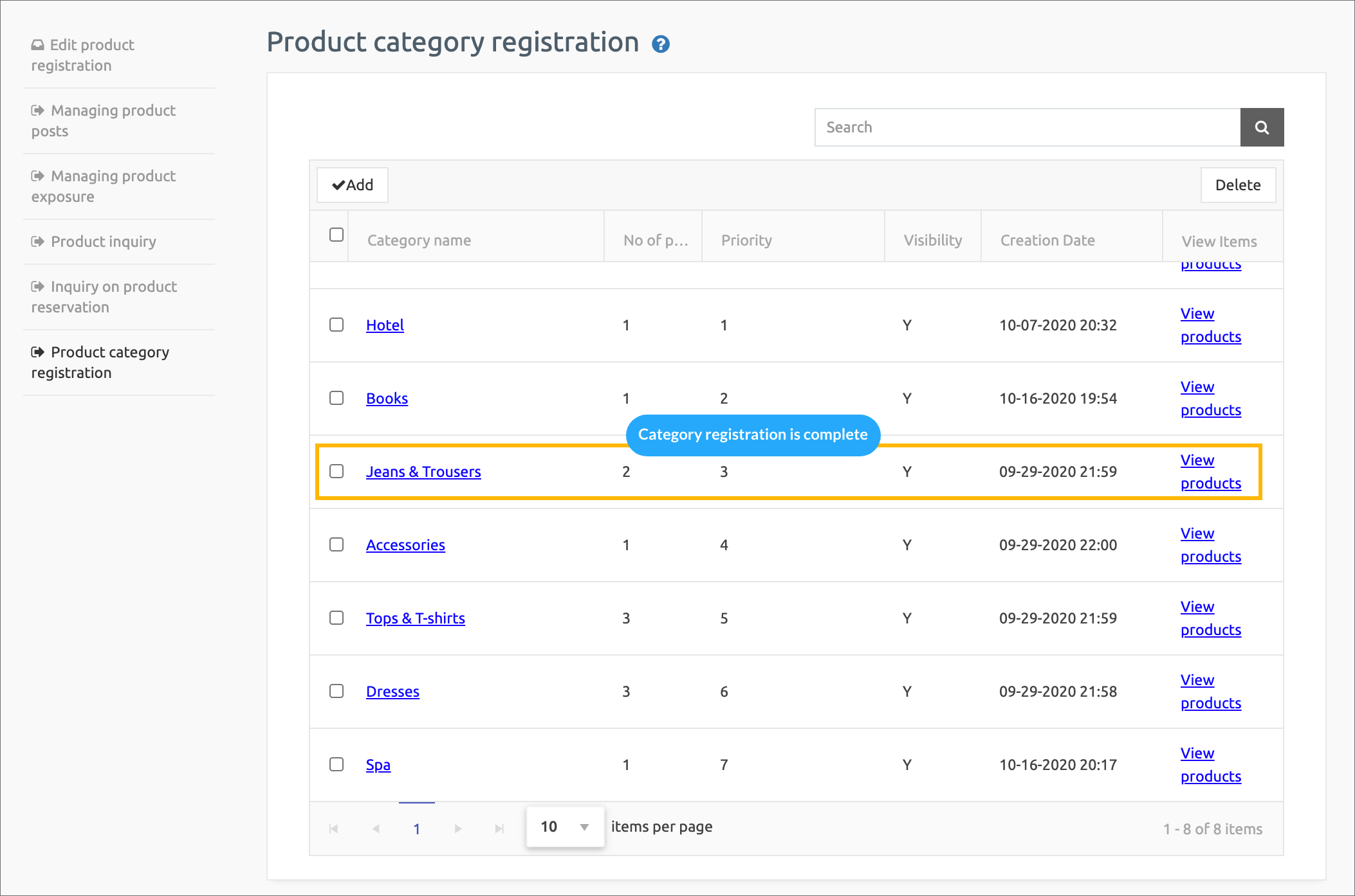 1. Product Category Registration Management