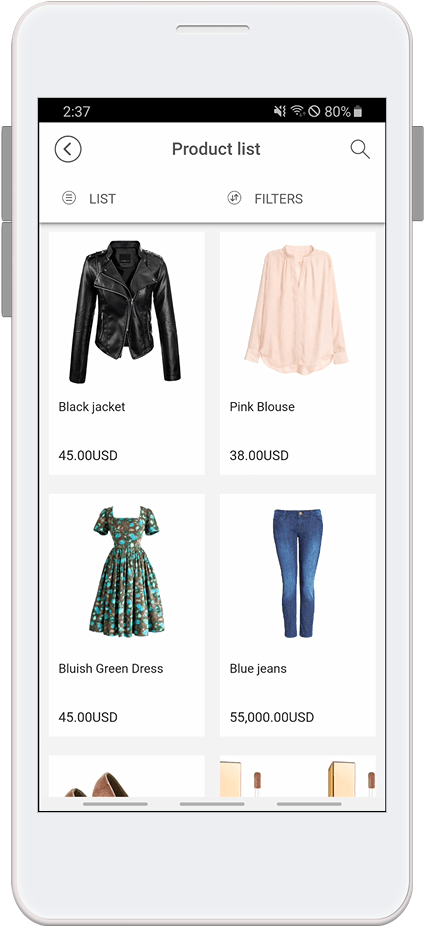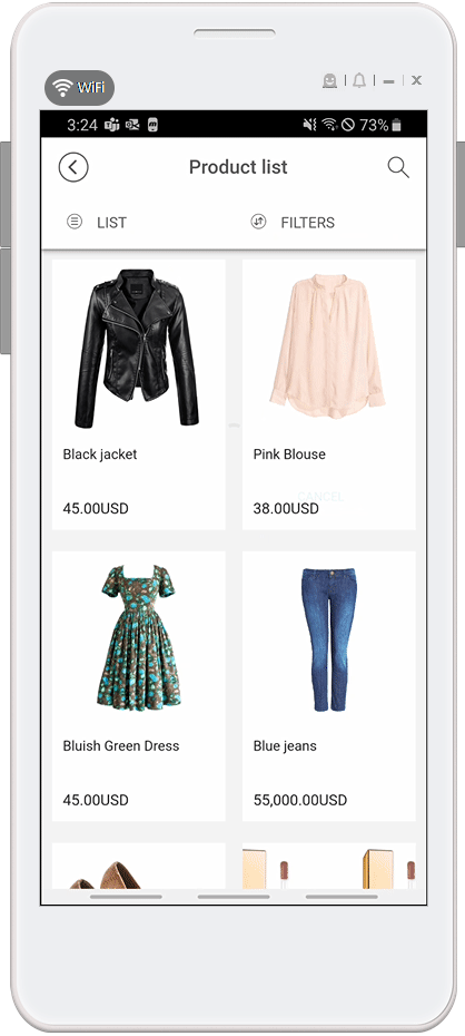 We will inform you how to apply the ‘Product Search’ among the pages provided by Swing Shop to the app.