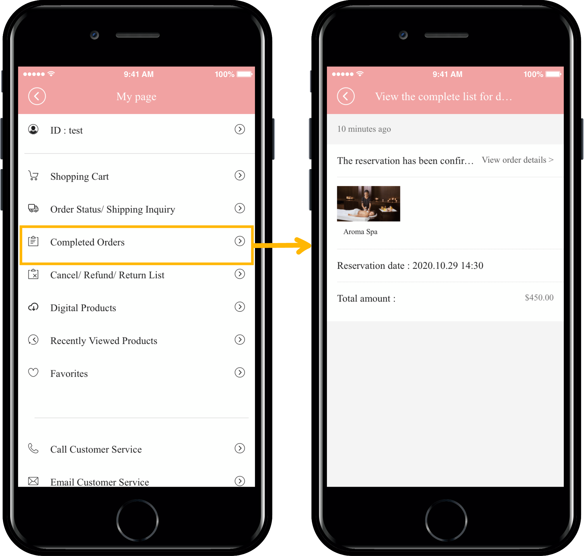 If you select the Delivery Completed/Purchase Completed menu on My Page applied to the app, you can check the purchased items.