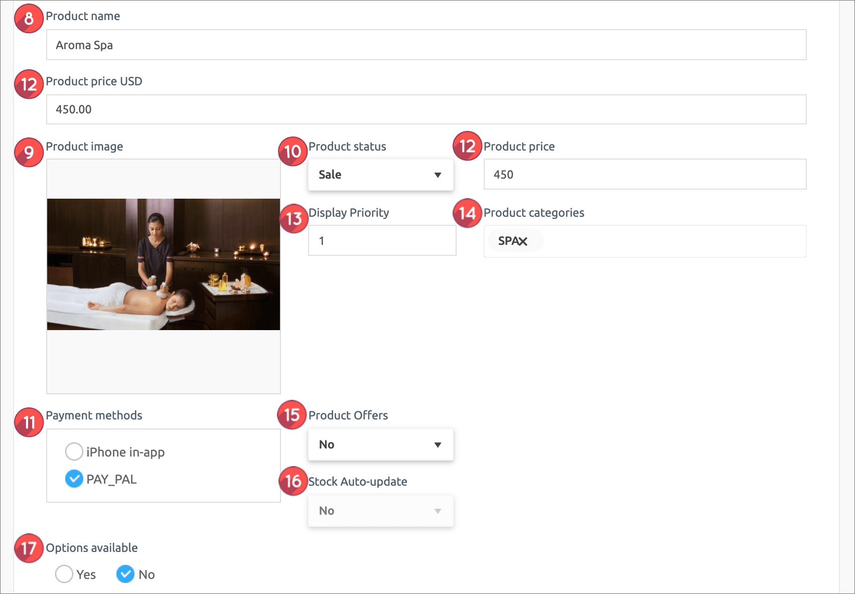 17. Whether to use an option: You can use it if you add an optional product to the reservation product.