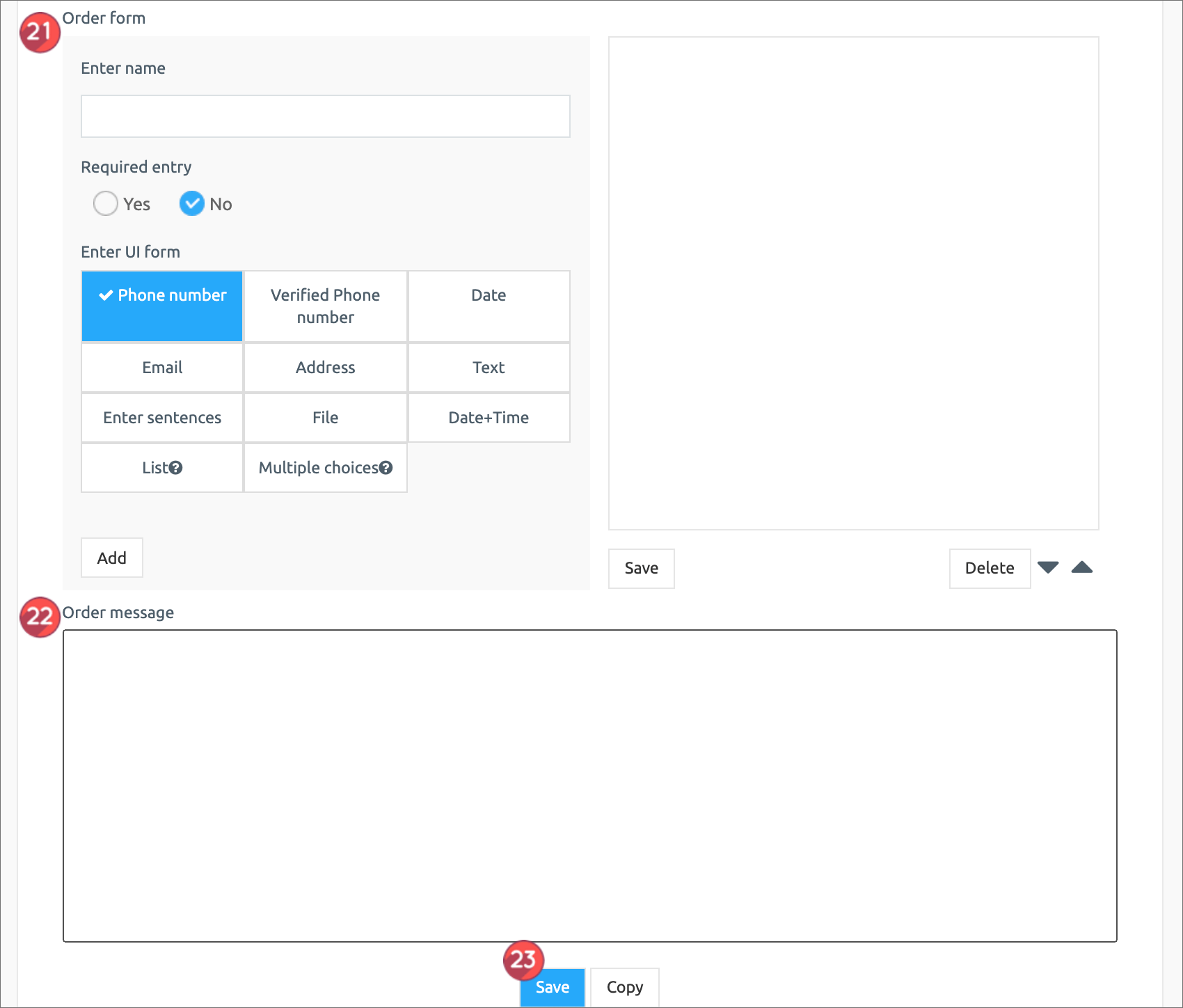 22. Order Completion Message: If there is no specific message, you do not need to write it.