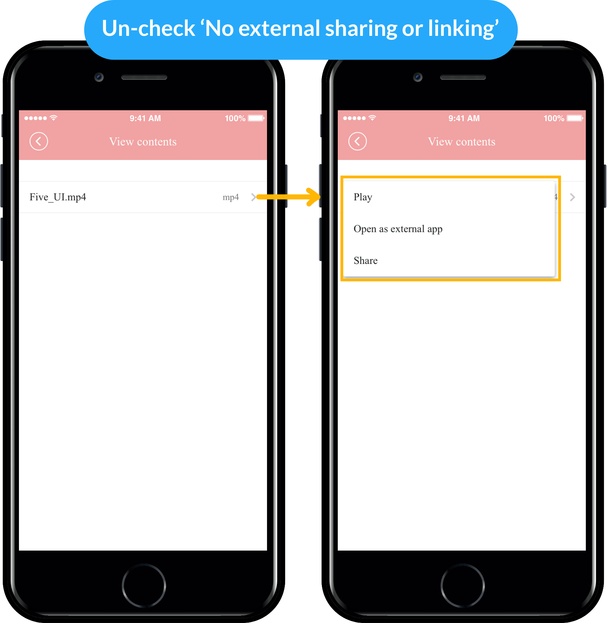 -If you can’t share purchased videos and files, and want to check only in the app, please check ‘Do not share or sync externally’.