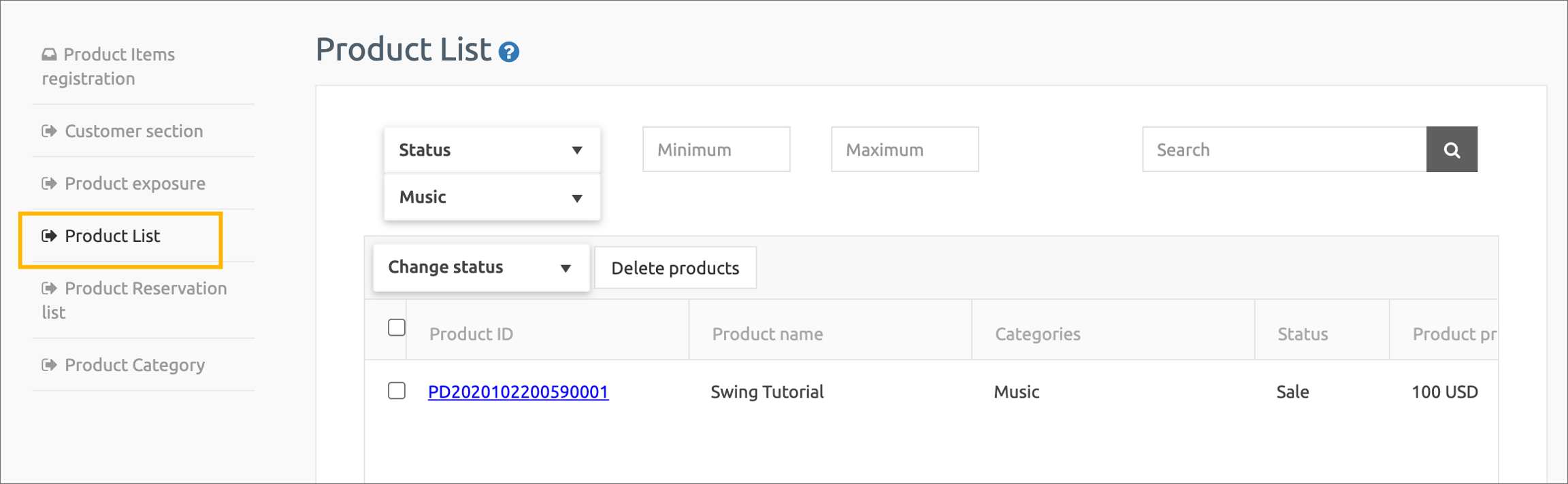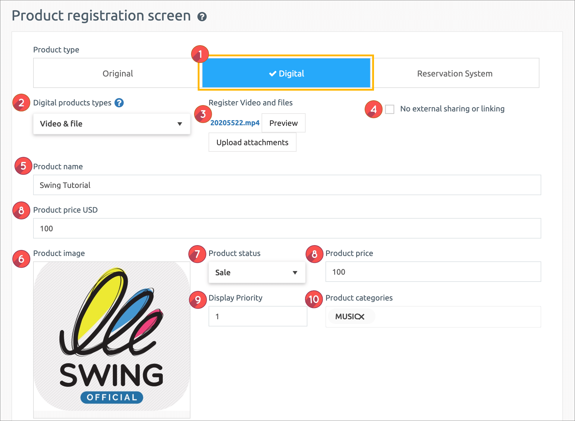 Swing Store can be registered by selecting a variety of product types – physical products, reservations products, digital products, etc.