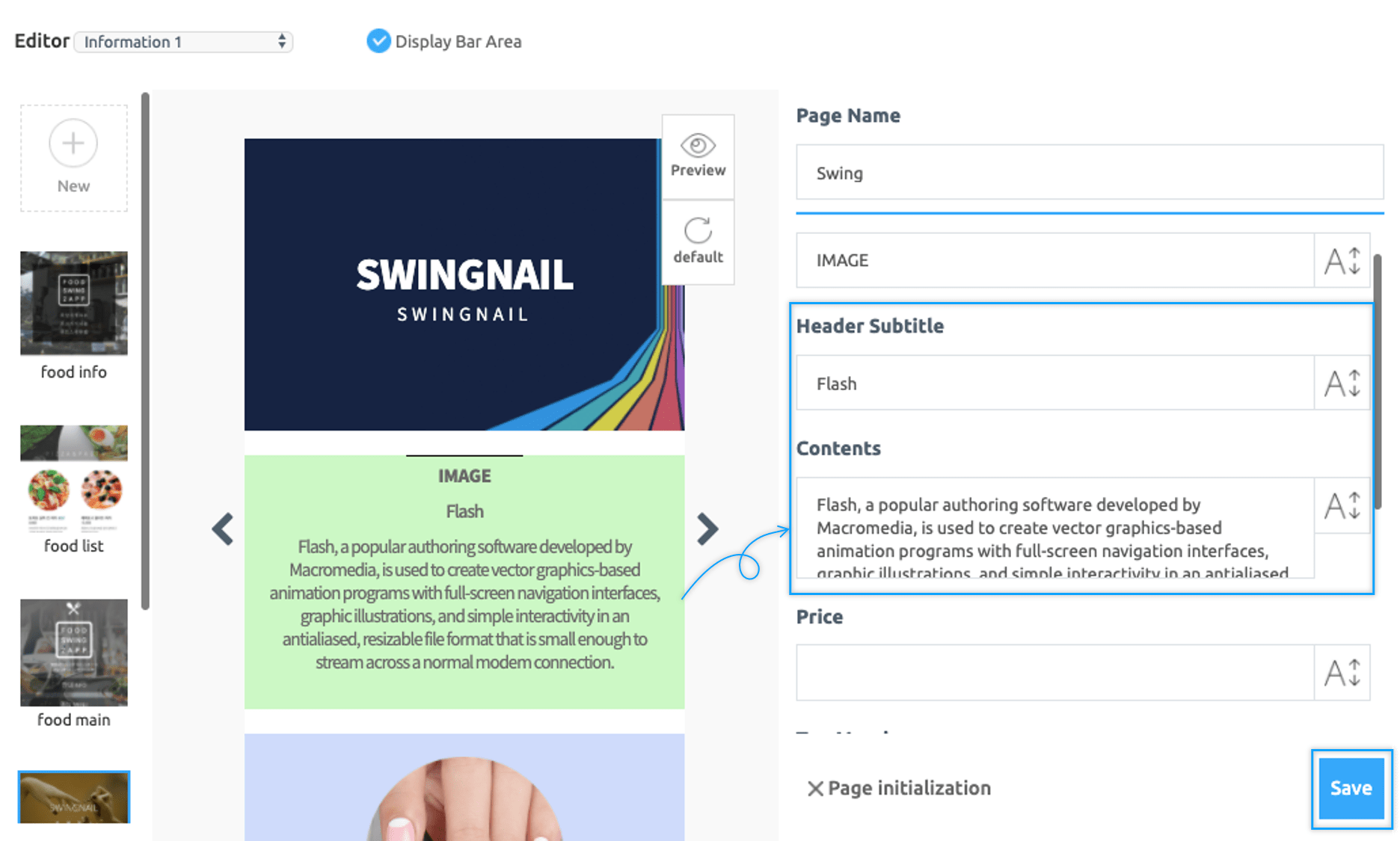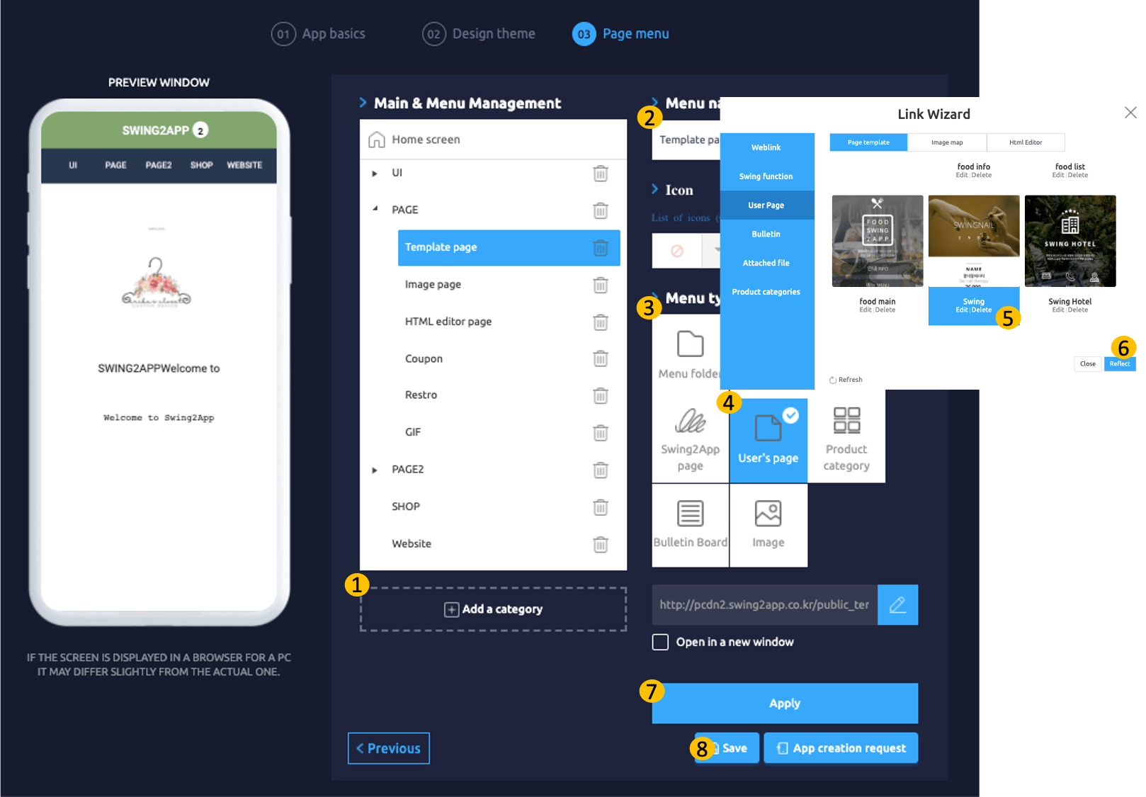 Select Page Template from the User’s Page tab and click New to select a web template from the list of Swing2App templates. Edit page as per requirement and save.