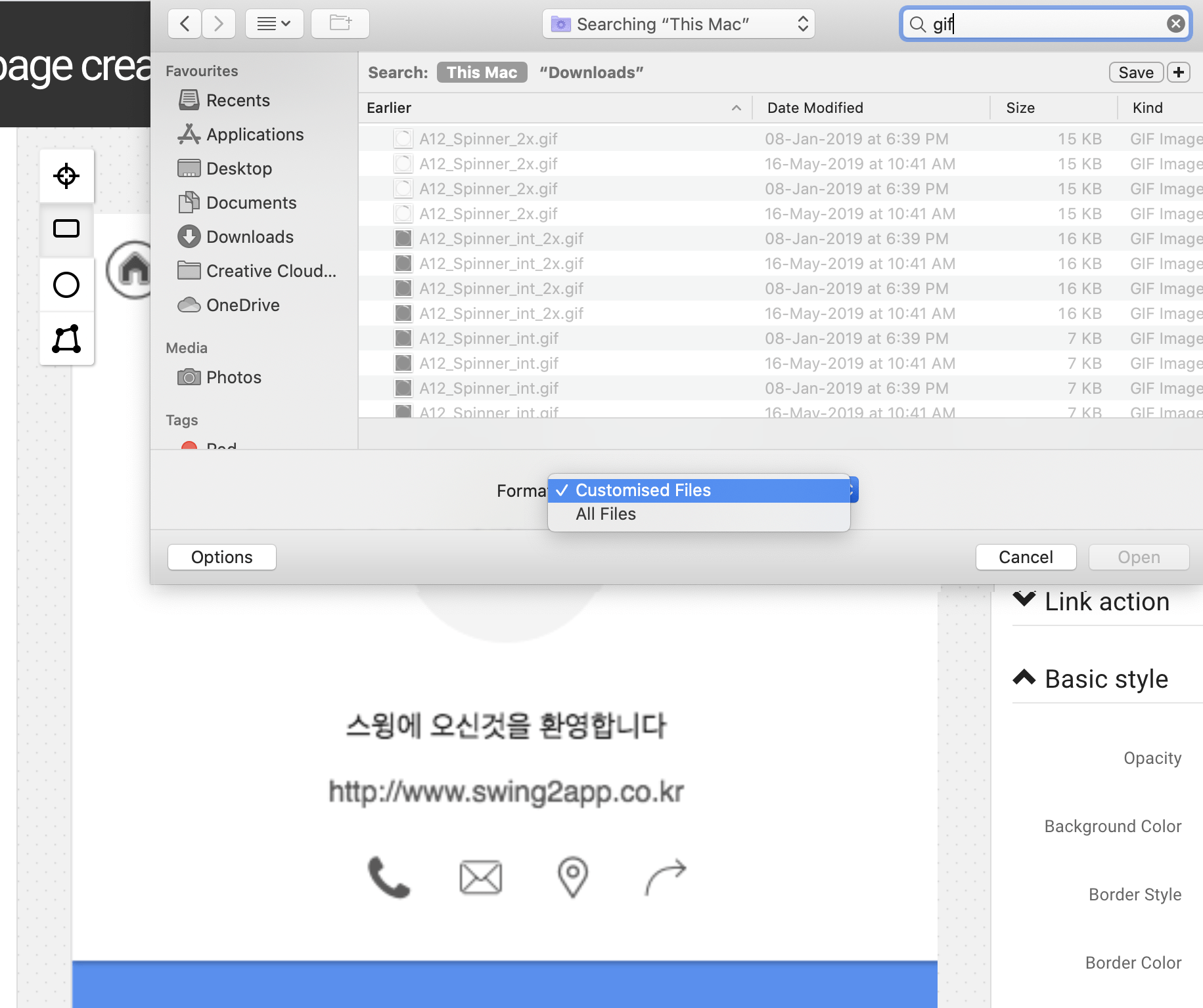 GIF files are not visible in regular files. Therefore, you need to change the setting to ‘All Files’ at the bottom of the file window to view the GIF files. Change to all files and select the GIF file you have already worked on.\
