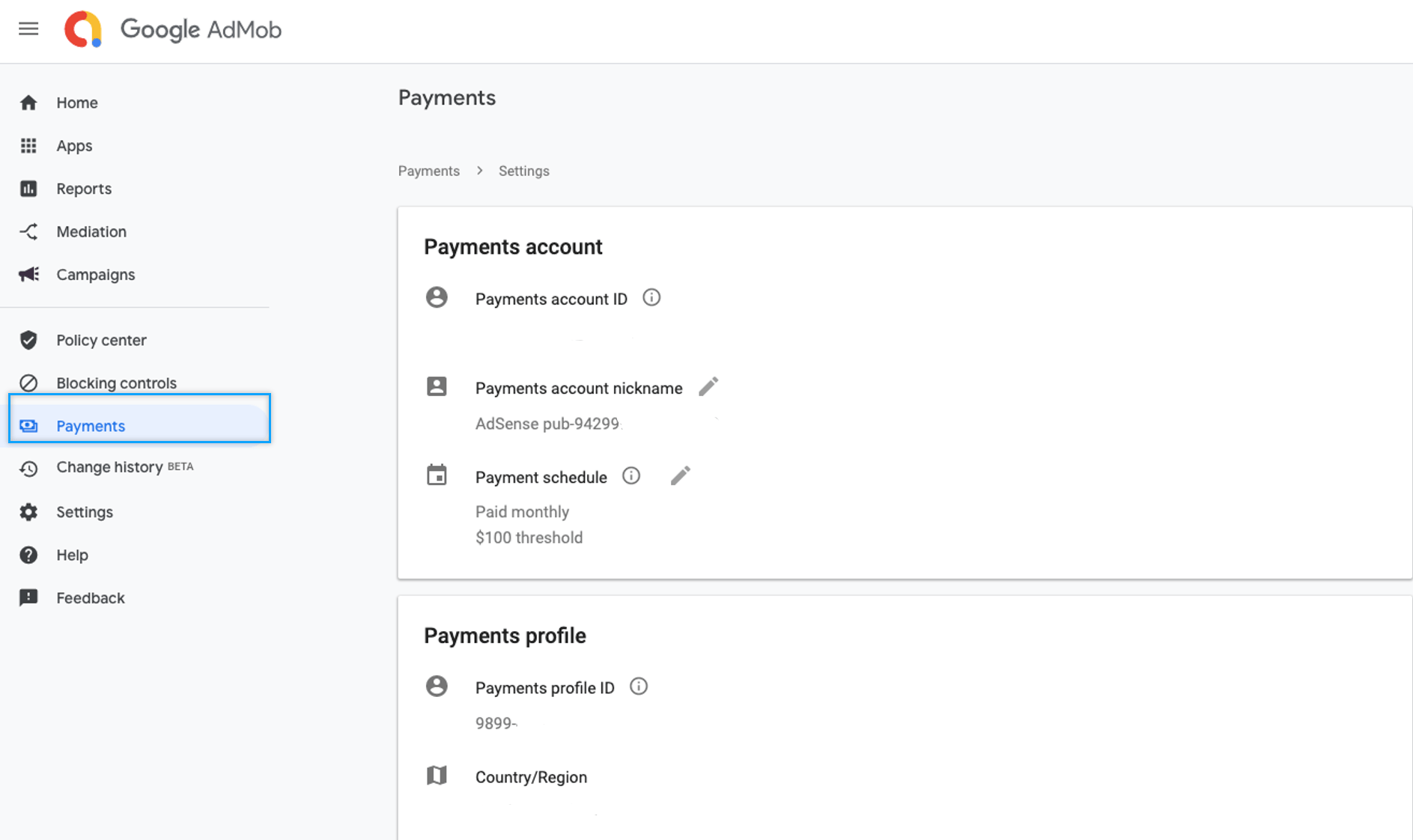 AdMob Operations – Adding payment information, checking un-reviewed and blocked ads