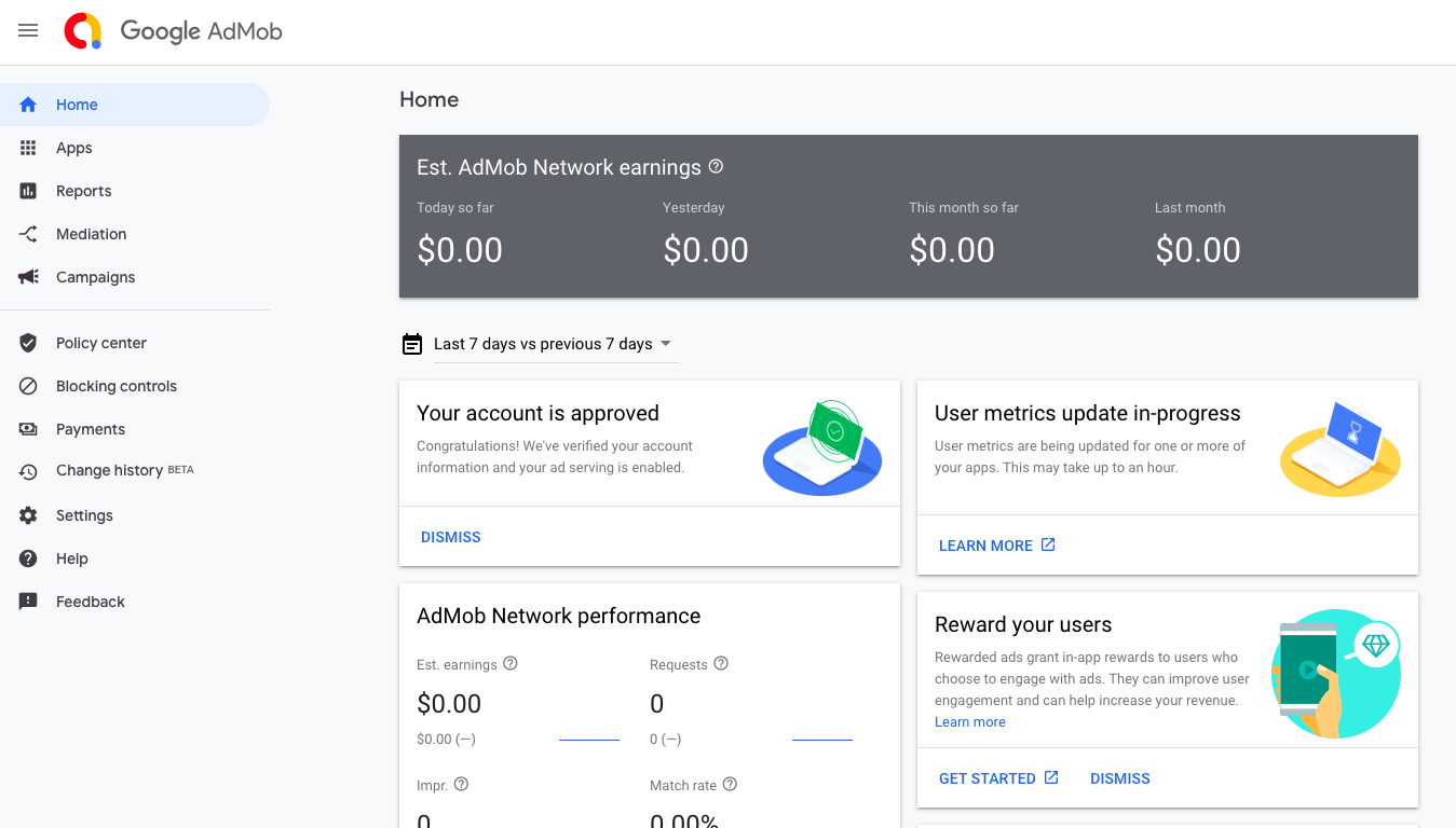 Therefore, those who signed up for the first time must be *Please make sure you have entered your payment profile in the AdMob dashboard.