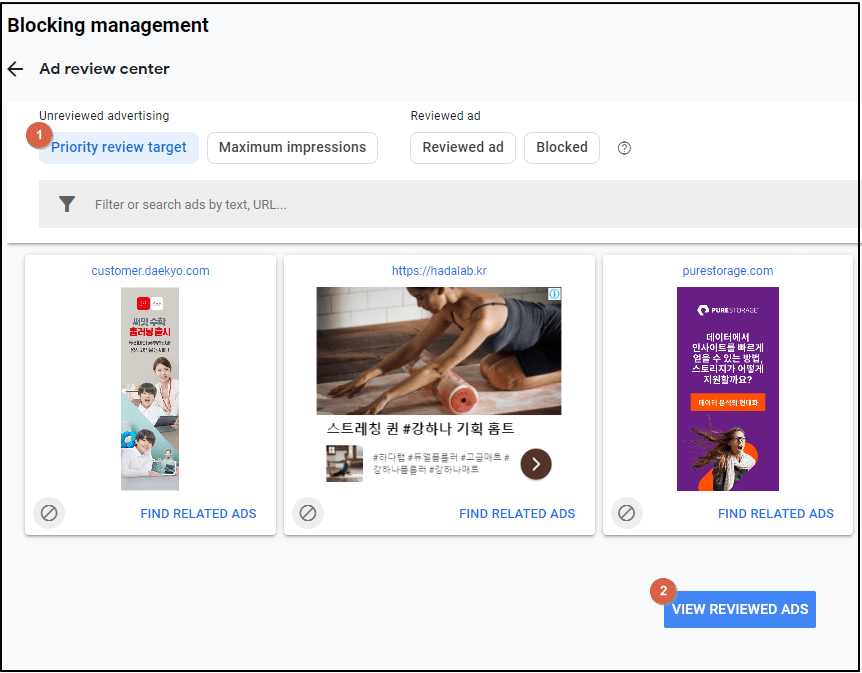 (1)If you select [Priority reviewed ads], you will see ads that have not yet been reviewed, as in the image above.