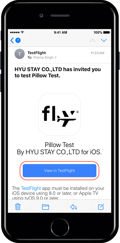 Select the <mark style="color:blue;">**\[View in TestFlight]**</mark> button in the mail.