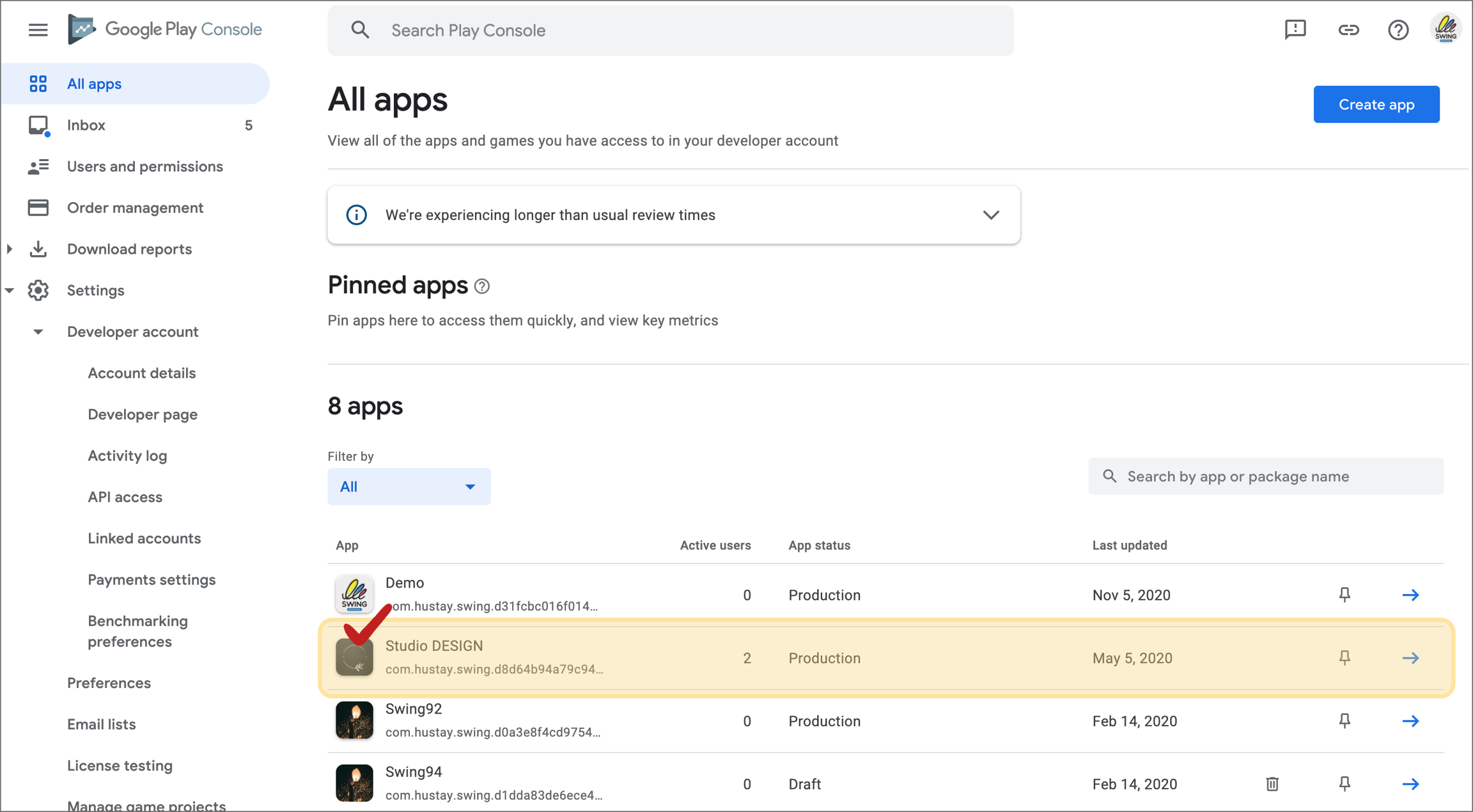 If the app is in [Pending] status (at the stage of being reviewed before release), it cannot be deleted until the app is released. Therefore, when deleting an app, it can be deleted only when the app has been released or is being stored temporarily.