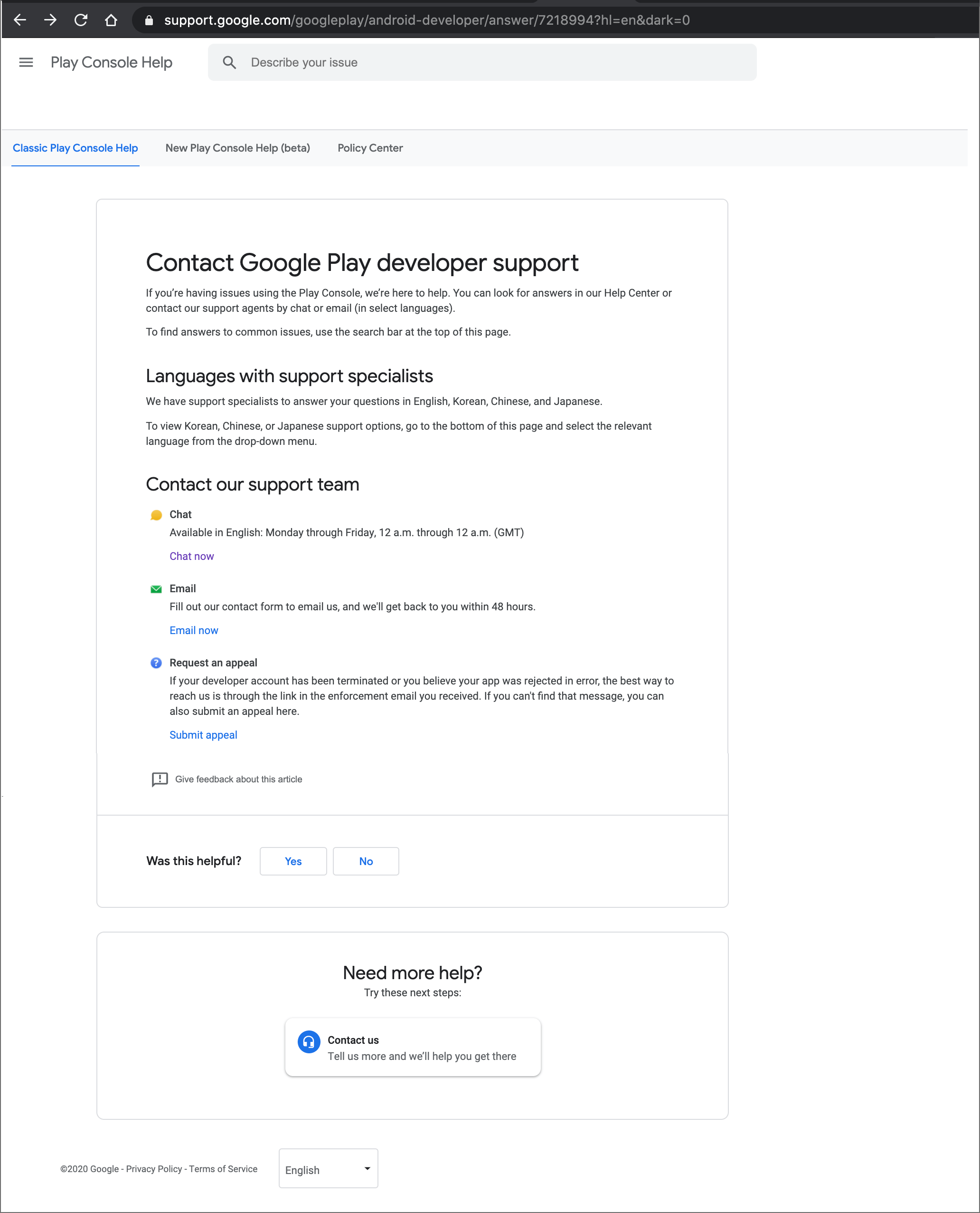 3) For inquiries about the Google Play Console (users using the app release), please go to the link below and use it.