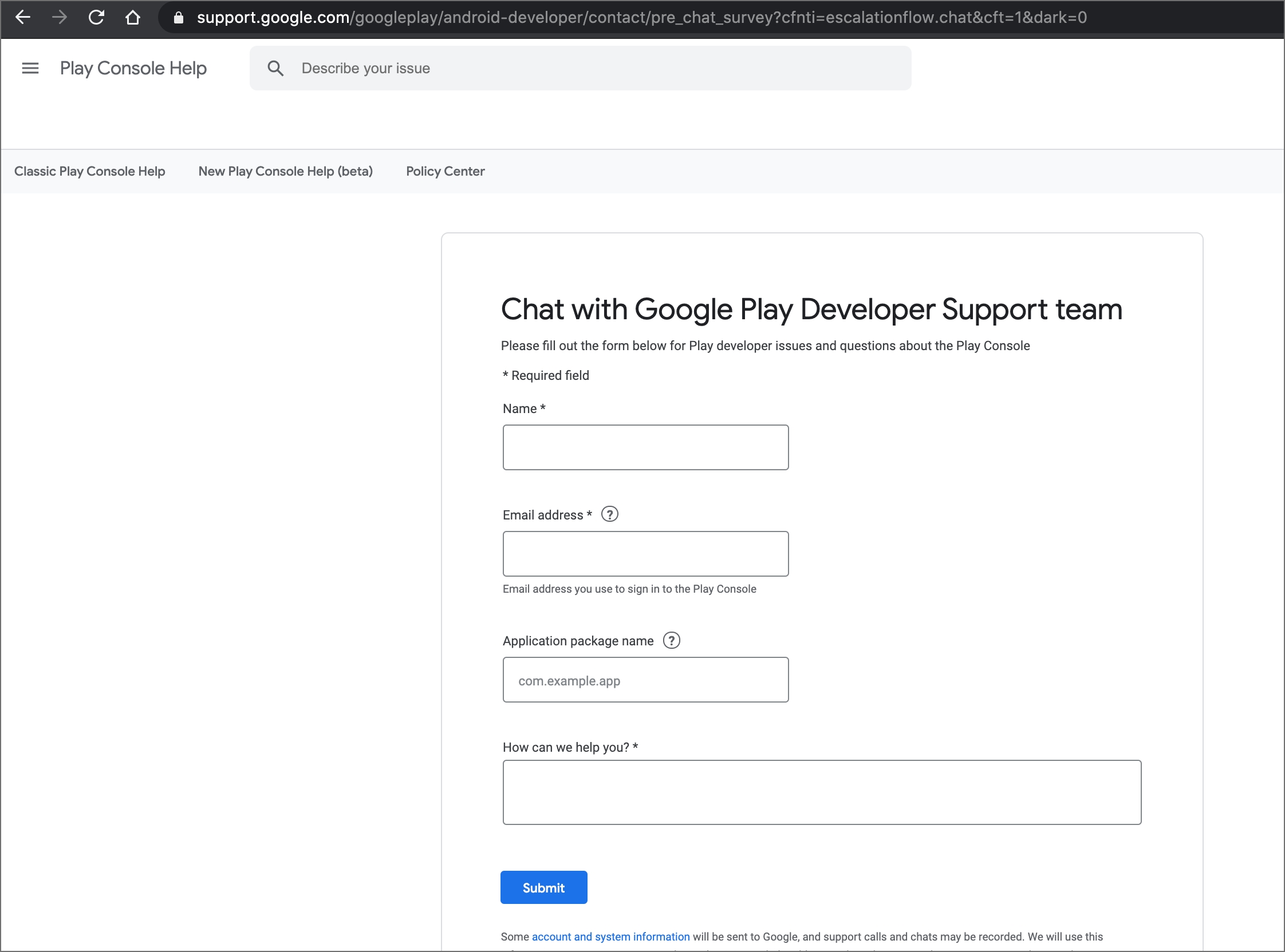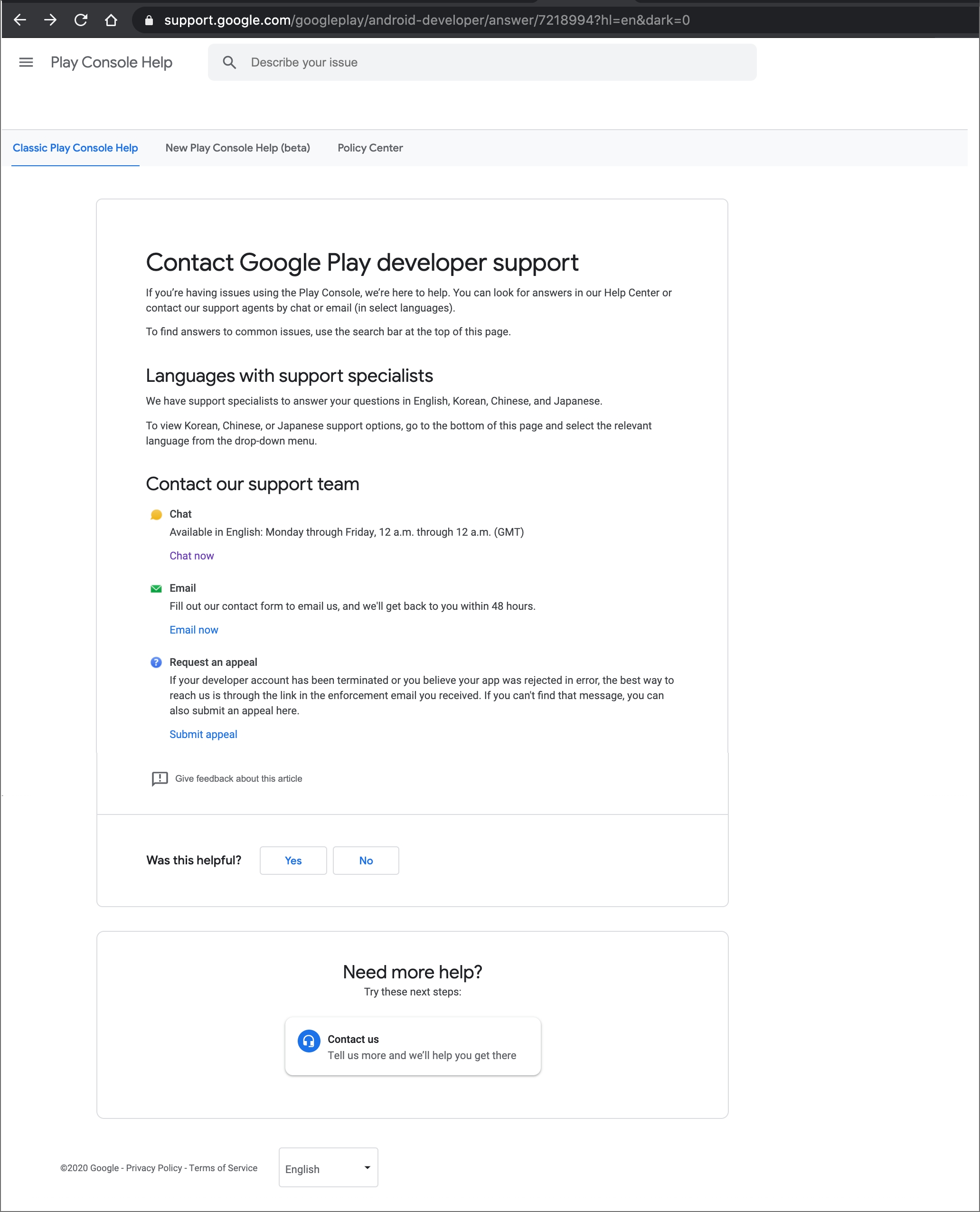 *The Google Play Console Support Team is a customer center that can be used by Google Play developers.
