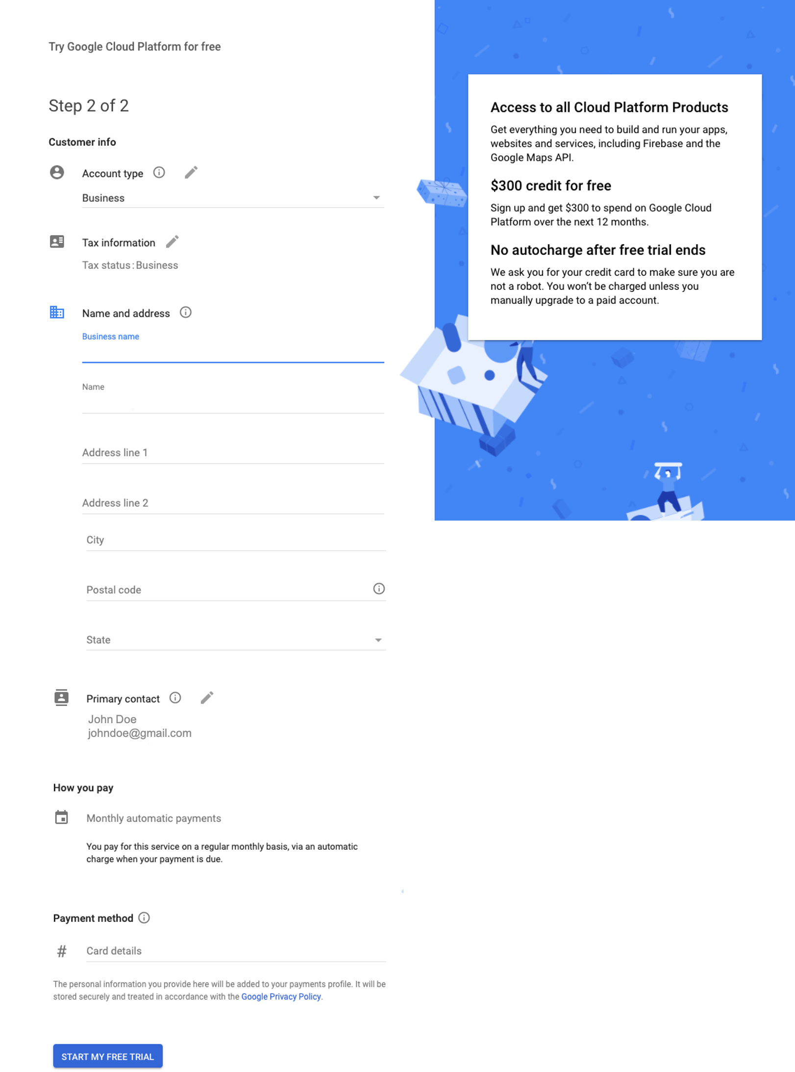3. Enter your customer information, payment method, and select [Start Free Trial].