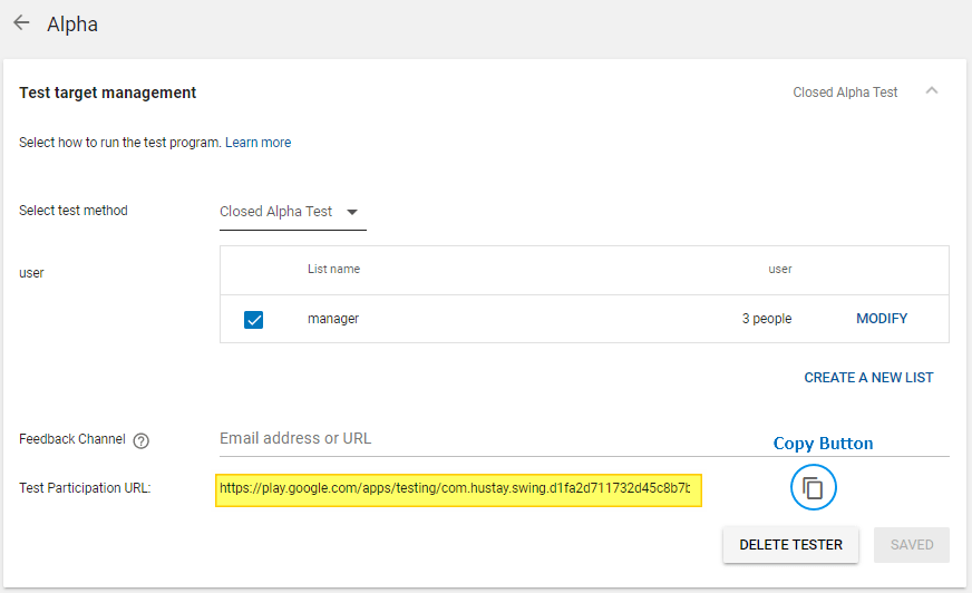 When the alpha test app is released, the *test participation URL will be created.