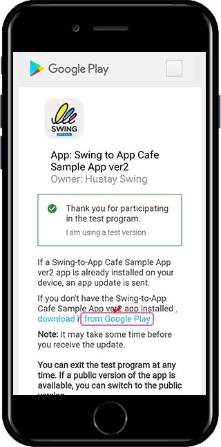 Select the test participation link URL above to go to the Google Play test screen.