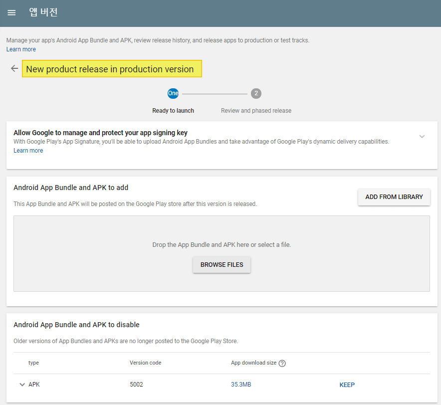Release Management → Select [Production Track] from the app version and register the APK file.