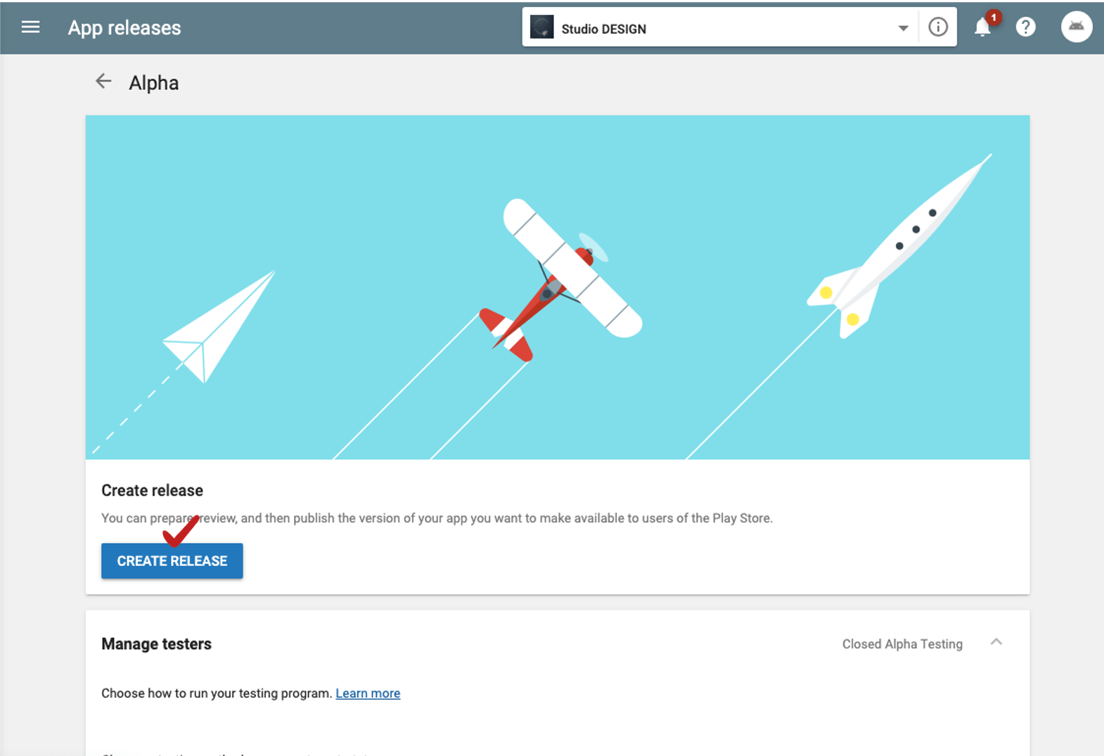 Upload the APK file to be released in Alpha.