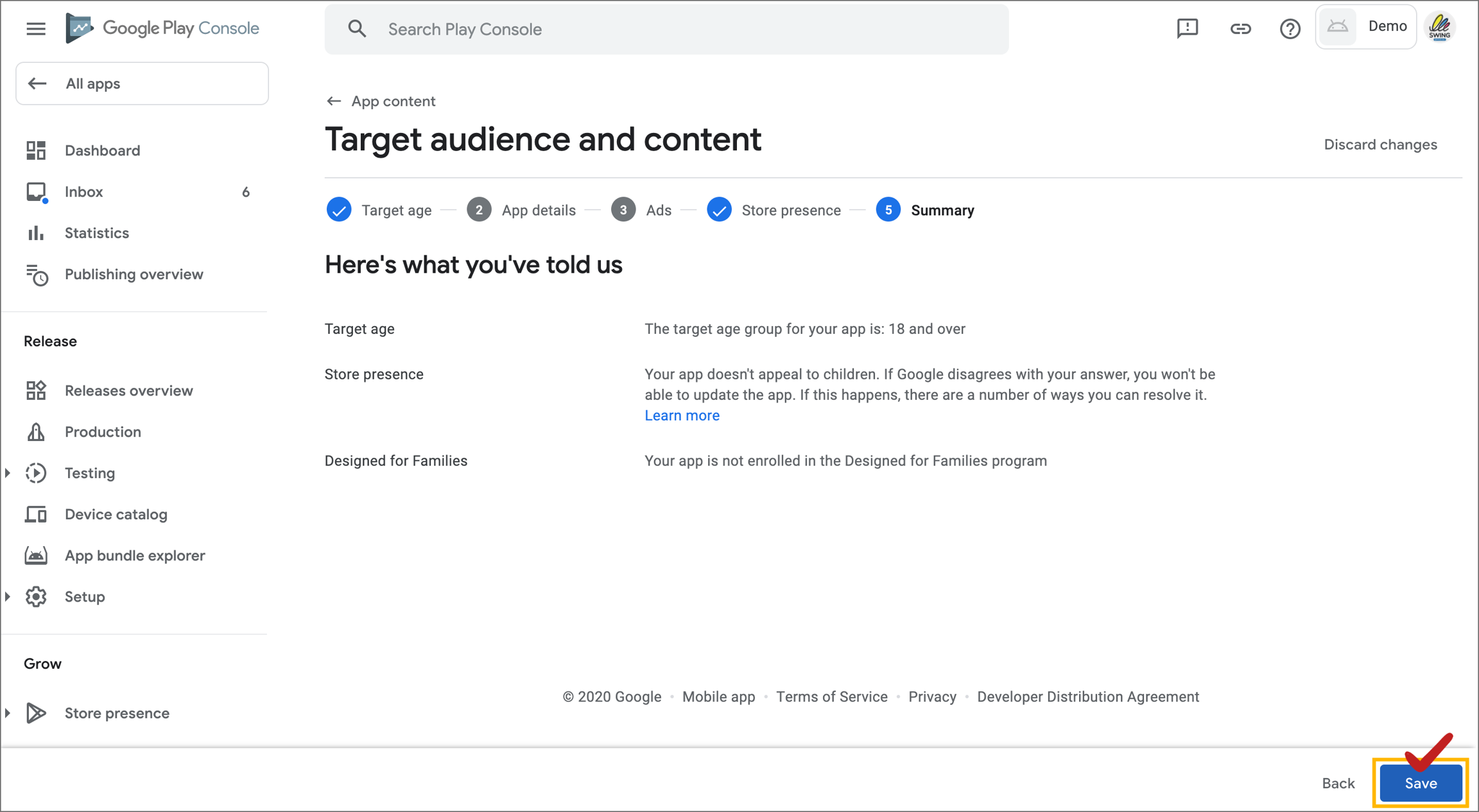 If there are no ads, check “No, there are no ads in the app” and save