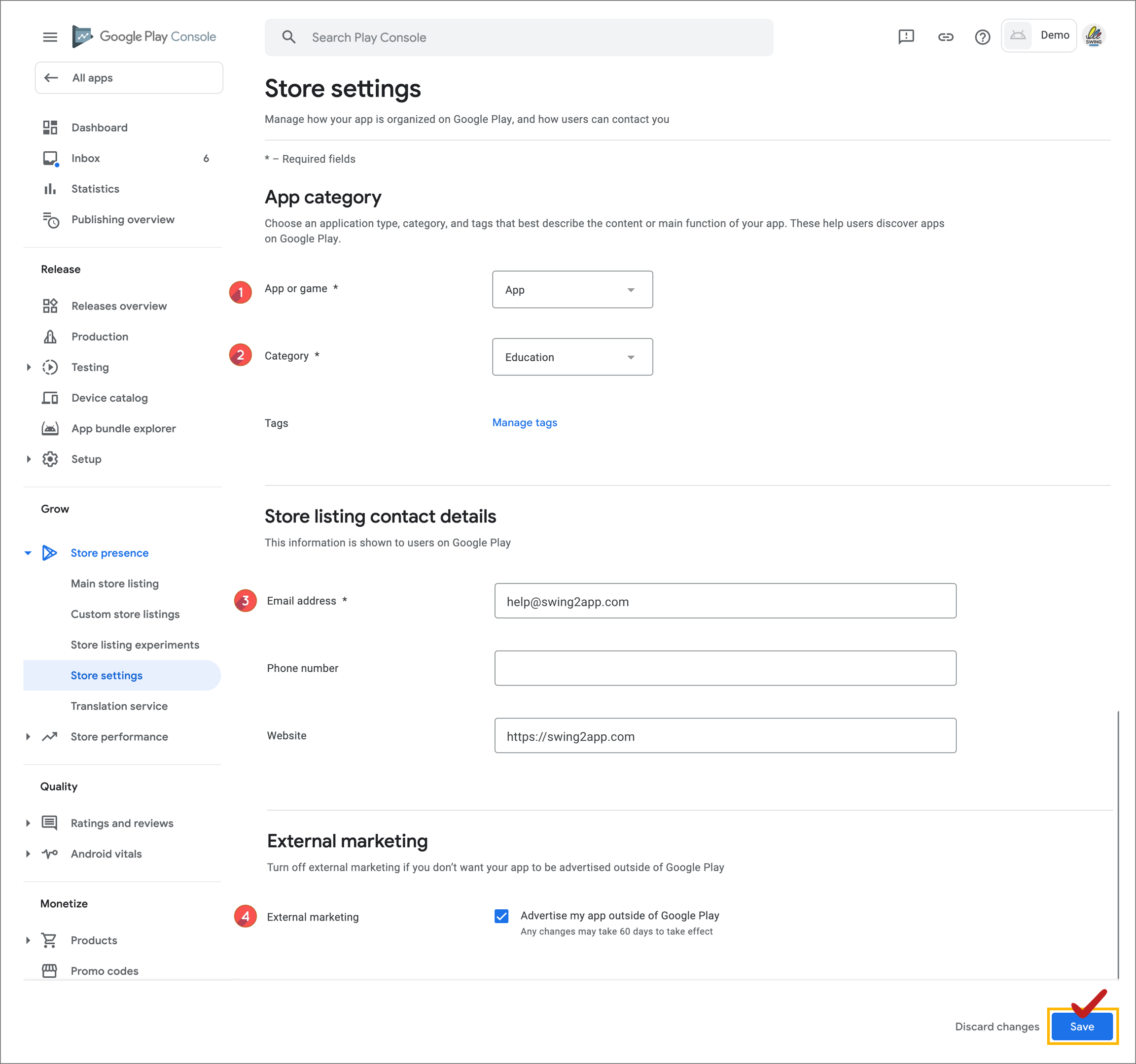 All the information you need to enter in the play store is complete.